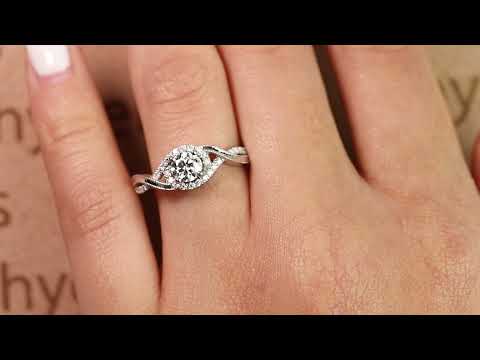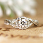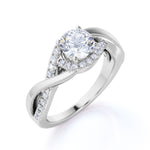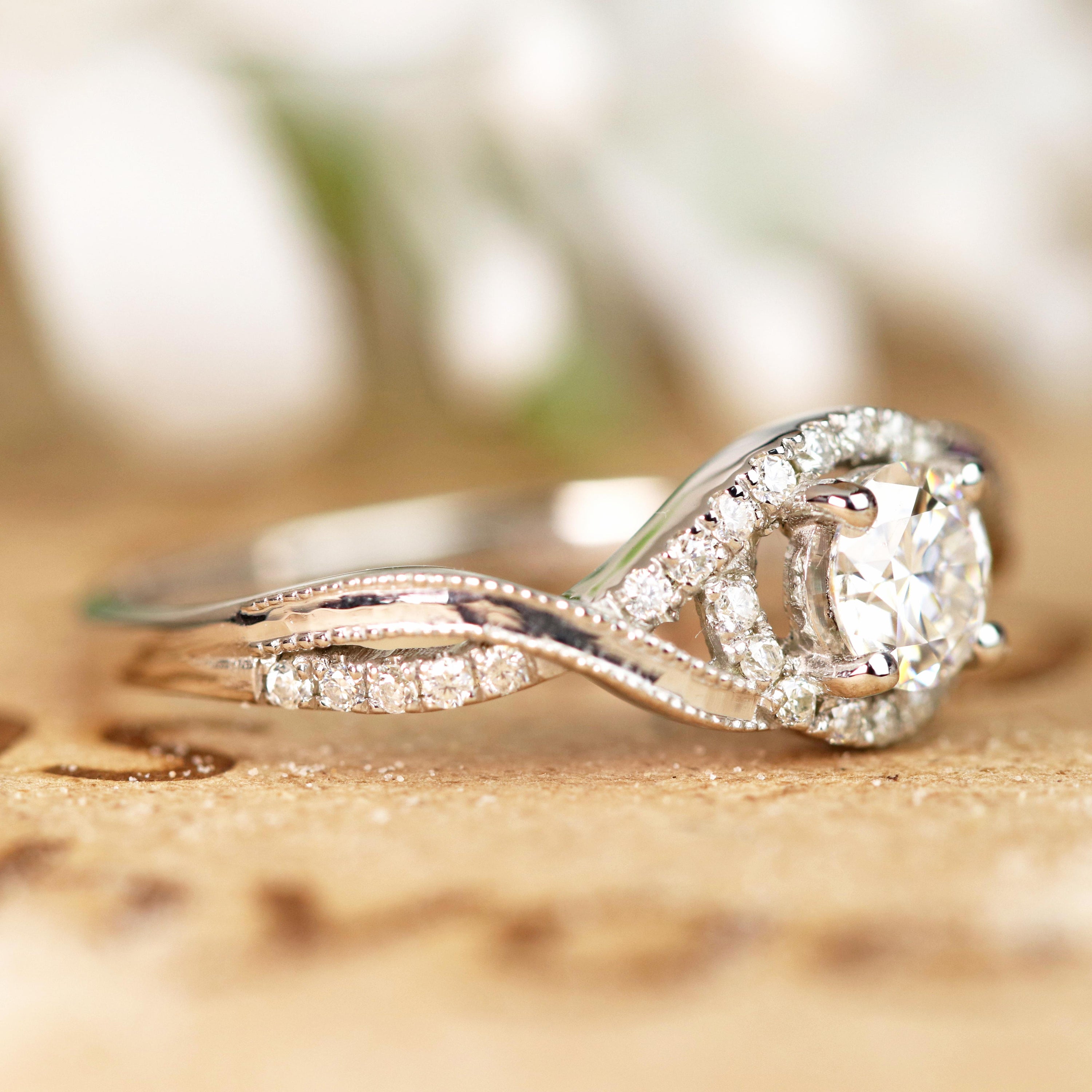 Elegant 1 Carat - Round Moissanite - Pave - Twisted Band - Infinity - Swirl Engagement Ring - 10K White Gold