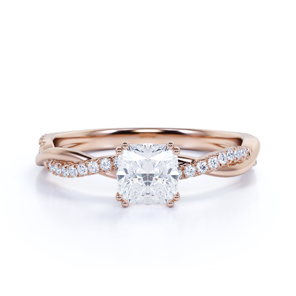 Infinity 0.58 ct TDW Cushion Cut Diamond and Twisted Engagement Ring in Rose Gold