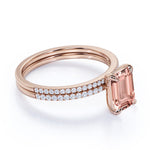 Sale: 1.50 Carat Peach Pink Morganite (emerald cut Morganite) and Diamond Engagement Ring Wedding Bridal Set