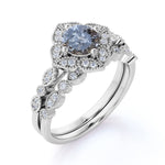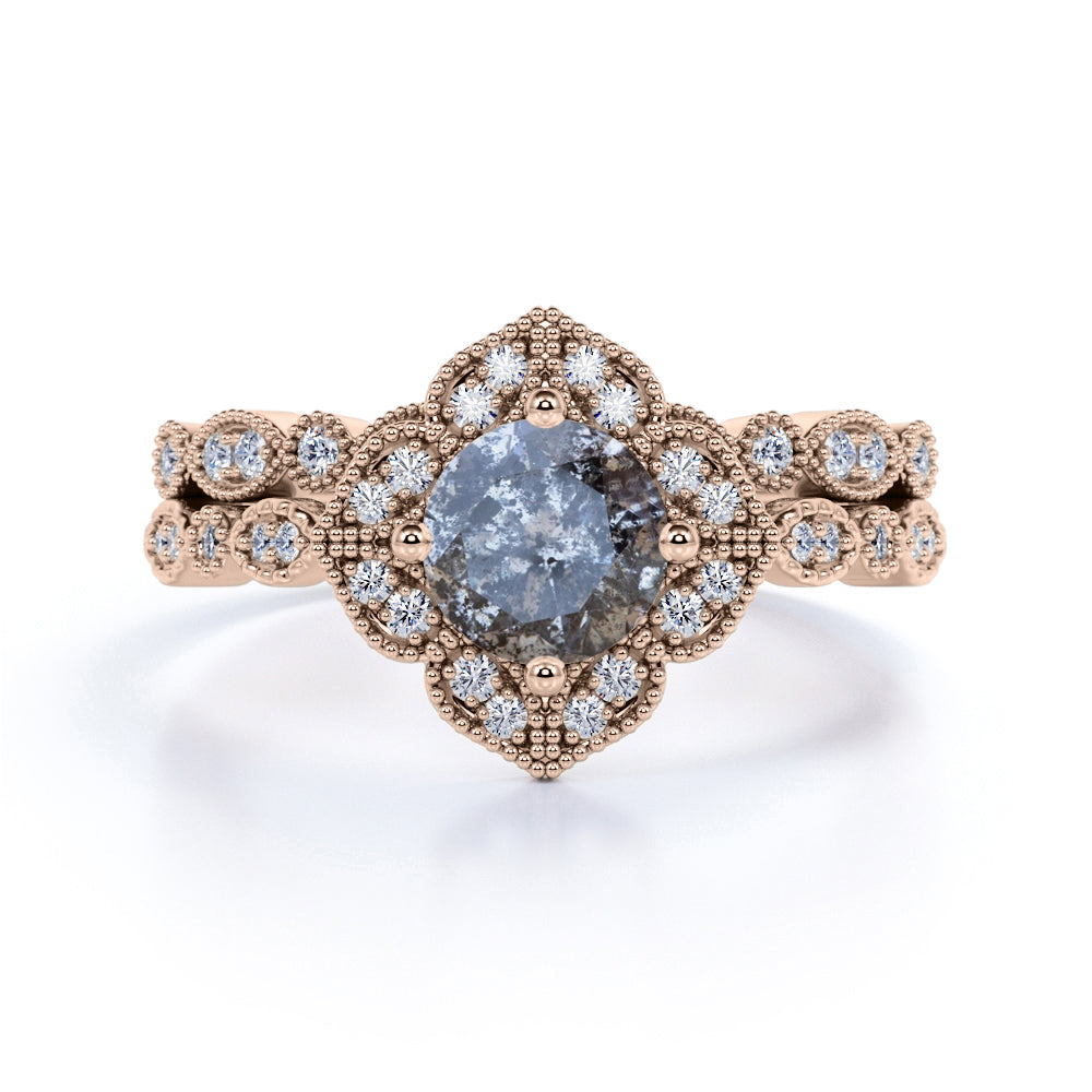 1.25 Ct Round Salt and Pepper Diamond Floral Wedding Ring Set