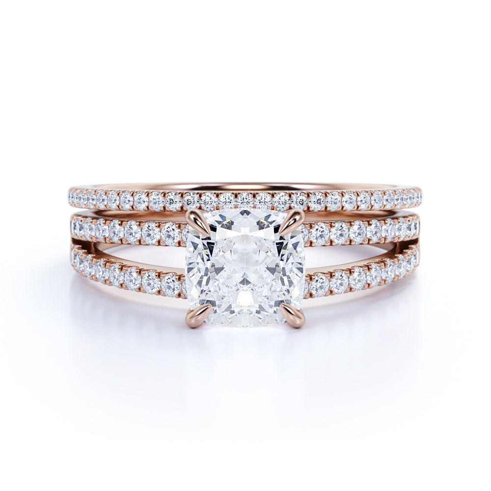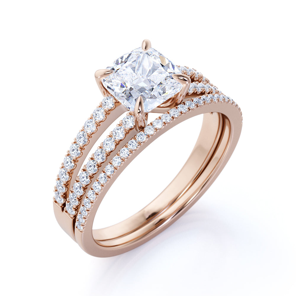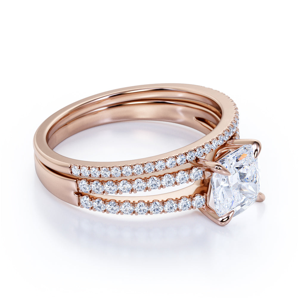 • This wedding ring bridal set can be made in either 10k, 14k, or 18k of real, solid gold in any color between Rose, White, or Yellow.