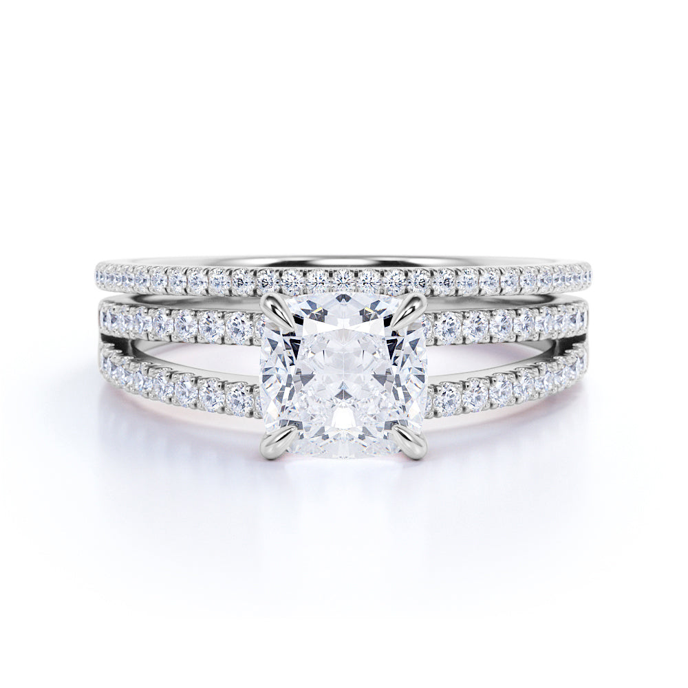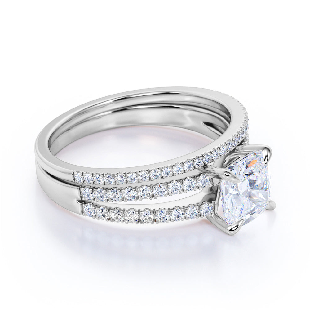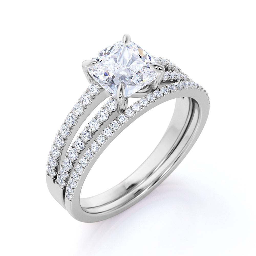 1.75 Carat Moissanite and Diamond Ring Cushion Cut Bridal Set in White Gold