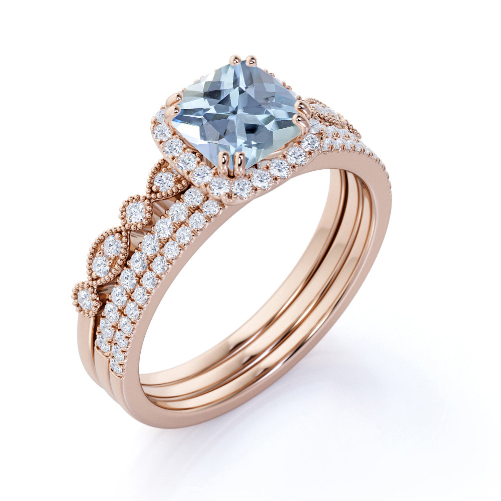 Halo 2 ct Princess Aquamarine Vintage Trio Set