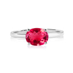 1.25 Carat Oval Cut Ruby SWAROVSKI - July Birthstone Solitaire Engagement Ring in 18k White Gold Over Silver