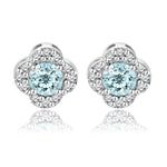 1 carat Beautiful Flower Halo Round Shaped - Aquamarine - March Birthstone Stud Earrings in 18K White Gold over Silver
