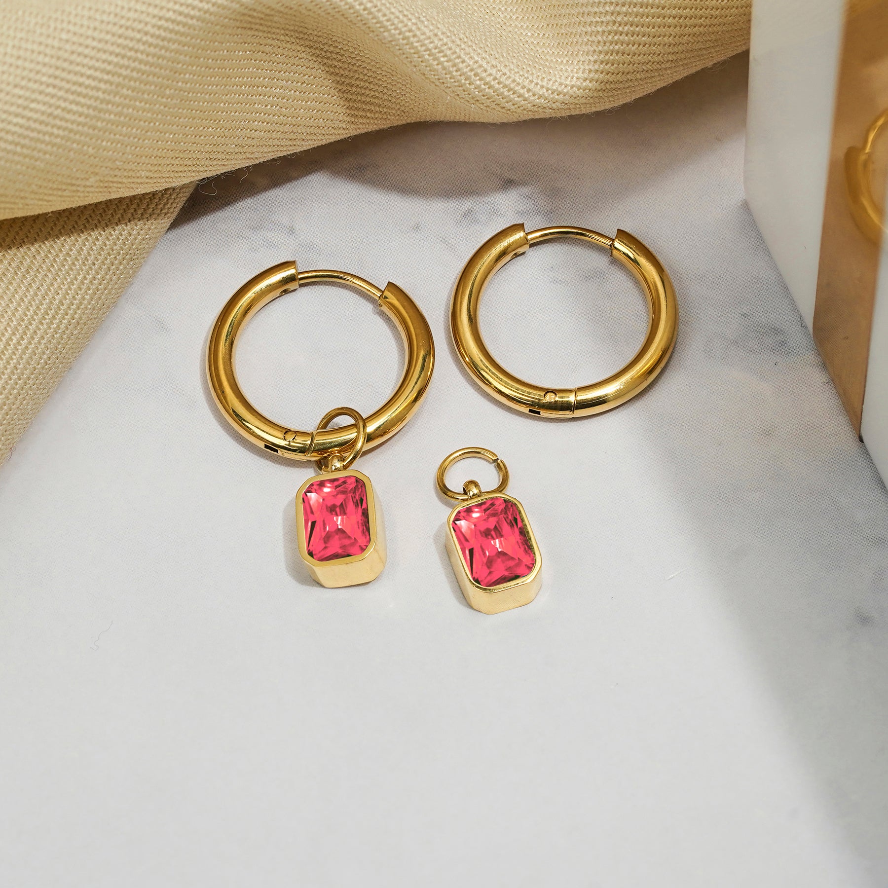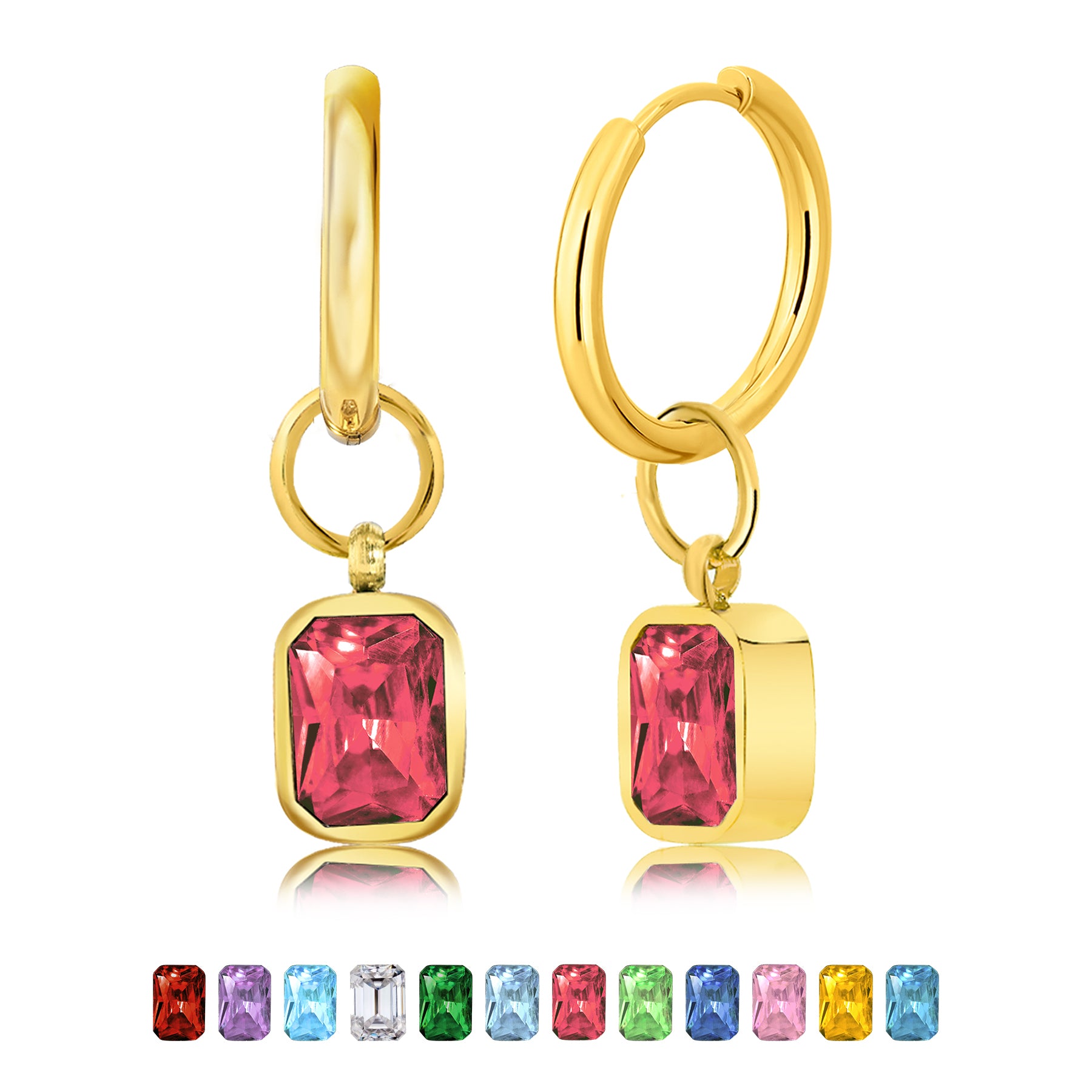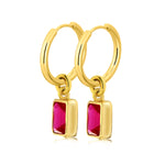 2 Carat Emerald Cut - Ruby - July Birthstone Bezel Huggie Hoop Earrings - 18K Yellow Gold Plating