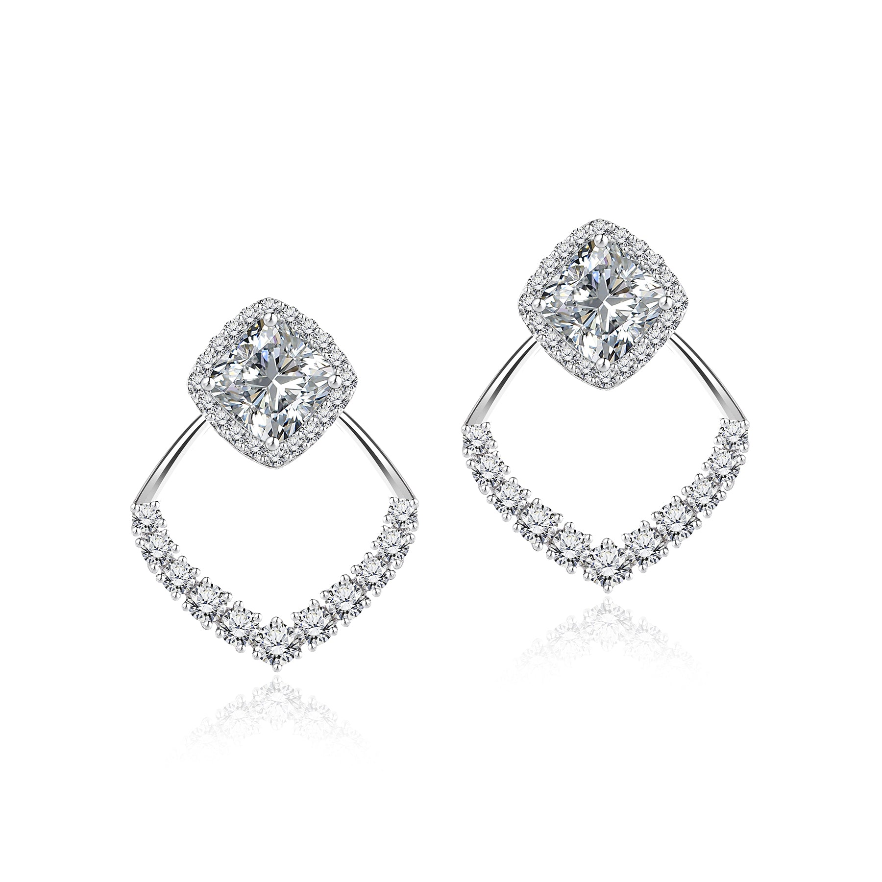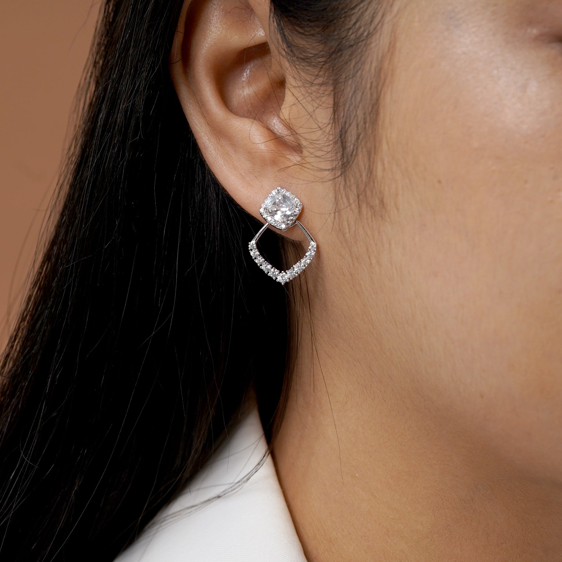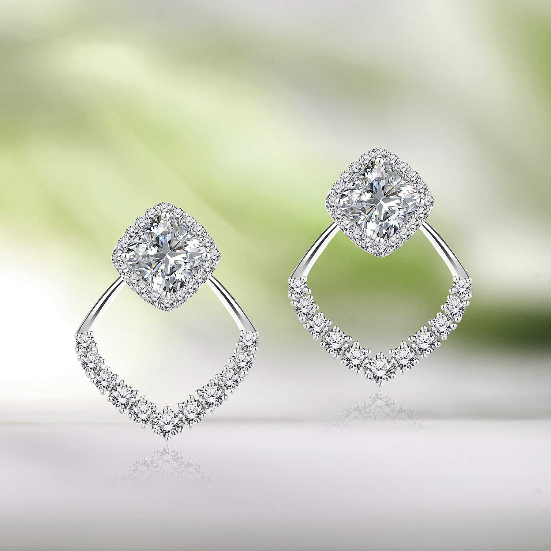 3 Carat Cushion Cut Halo Drop Earrings with Open Cushion Decor in Sterling Silver - Gift for Her