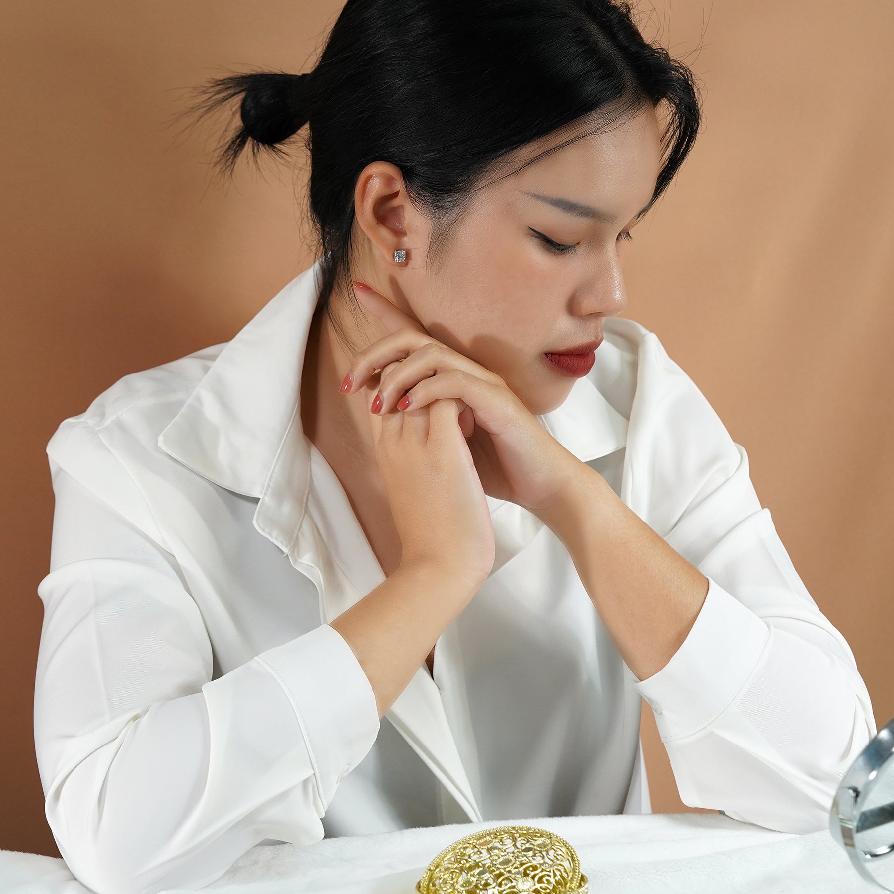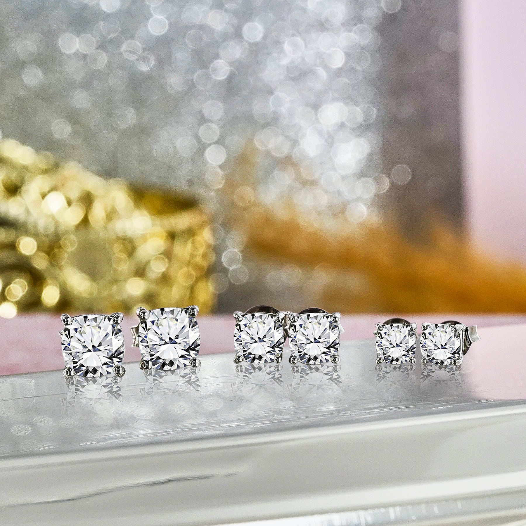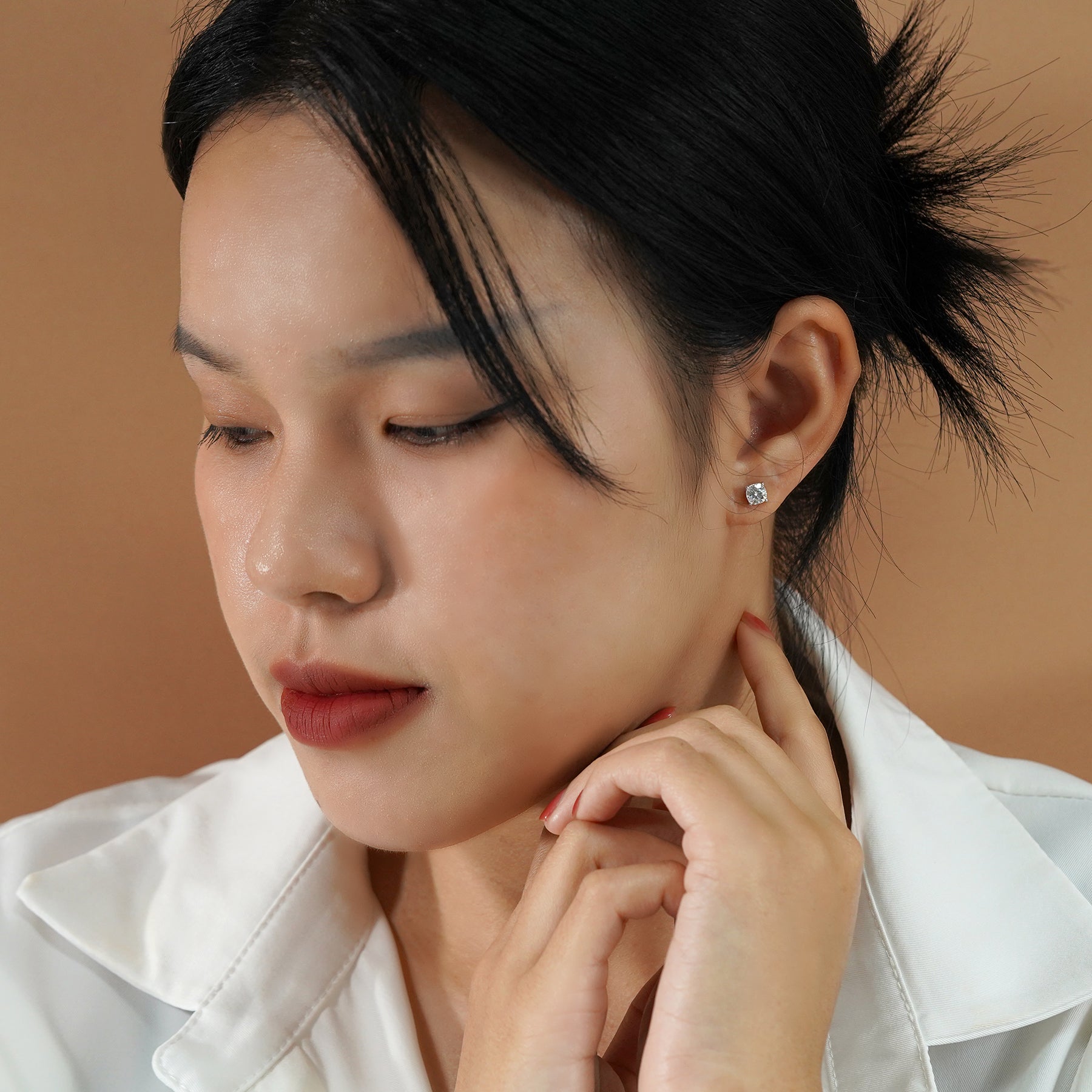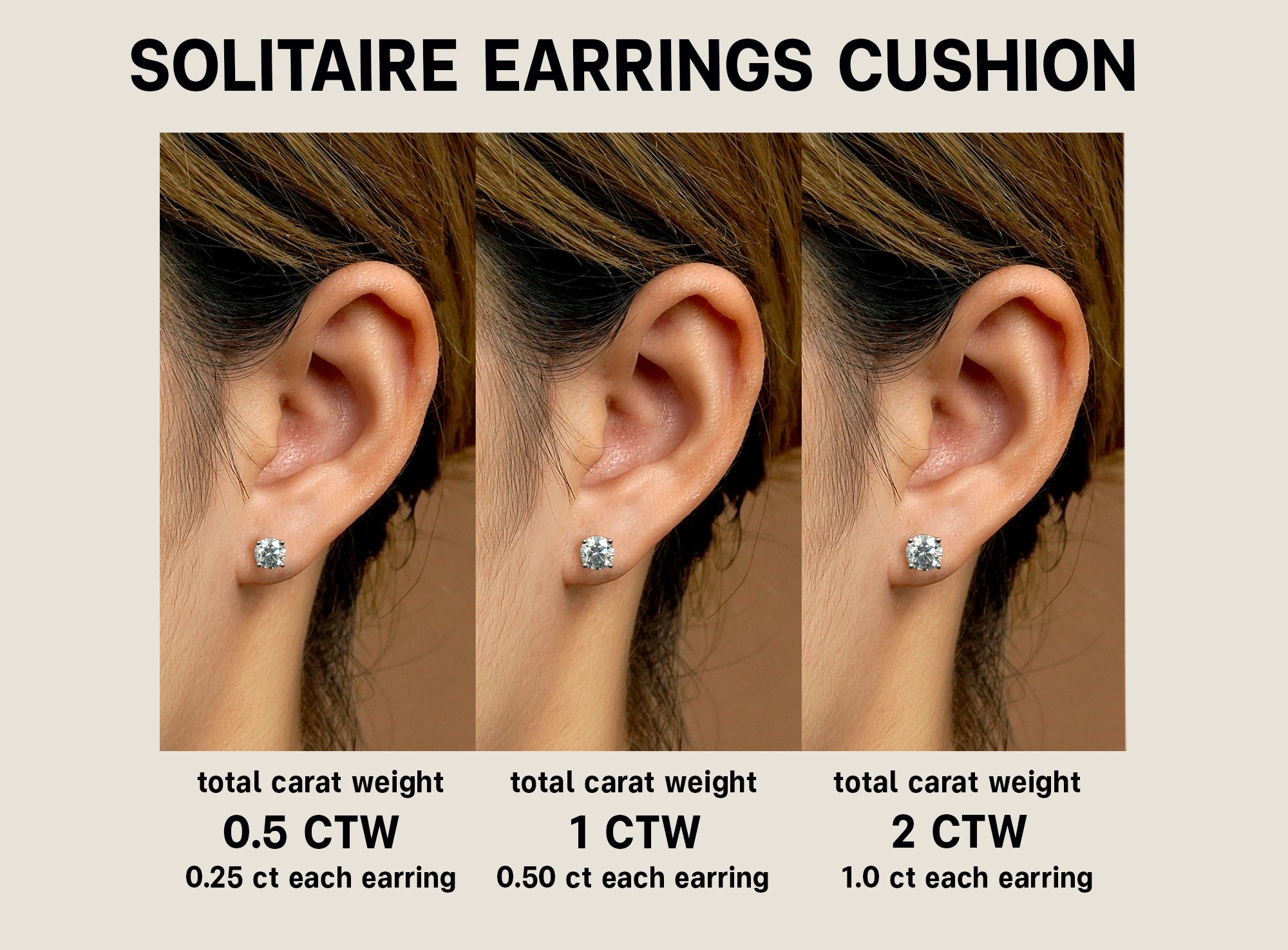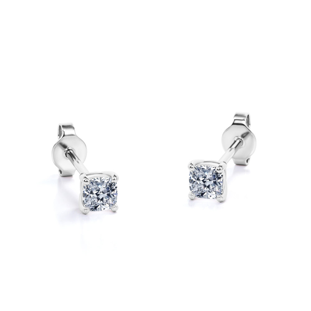 Be highly fashionable with these 4 Prong - 0.20 Carat Cushion Cut Certified Lab Diamond - Solitaire Stud Earrings - 18K White Gold Plating Over Silver. Professionally handcrafted into a fine cushion cut by our skilled jewelers, these beautiful Certified Lab Diamond screwback earrings are composed of 0.20 carat Certified Lab Diamond on solid white gold plating over silver, and each side of the earrings weighs 0.10 carat. Distinctive and extraordinary, these Certified Lab Diamond stud earrings is well-suited for those who are not quite into normal lifestyle. With its glory and clarity, these Certified Lab Diamond screwback earrings will unquestionably be an essential additional to any jewelry collection. These Certified Lab Diamond screw-back stud earrings are beautiful and accessible since it is available at an affordable price. If you are in search of an incredibly romantic gift for your significant other, our Certified Lab Diamond screw-back stud earrings can be a perfect gift for any occasion like Valentine's day, mother's day or anniversary. These earrings with Certified Lab Diamond gemstones can be customized, so customers can choose one of metal colors between 18K white gold plating over silver, 18K rose gold plating over silver, and 18K yellow gold plating over silver. Let’s impress her with these Certified Lab Diamond screwback earrings and she will be eternally joyful.