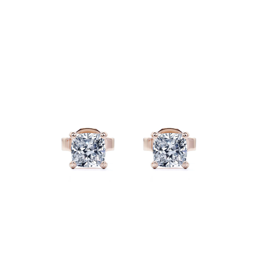 Embellish her ears with these Certified 0.5 Carat Cushion Cut Moissanite 4 Prong Solitaire Stud Earrings In 18K Rose Gold Plating Over Silver. Professionally handcrafted into a fine cushion cut by our experts in lapidary, these beautiful moissanite screw-back stud earrings feature 0.5 carat moissanite on rose gold plating over silver, and each side of the earrings weighs 0.25 carat. Distinctive and extraordinary, these moissanite stud earrings is well-suited for those who are not quite into normal lifestyle. With naked eyes moissanites look, shine and feel exactly like diamonds. With its splendor, these moissanite screwback earrings will enhance happiness and attract positive vibes. These earrings with moissanite gemstones are beautiful and accessible since it is available at an affordable price. Moissanites are the most popular alternative gemstone for diamonds while being at lower and more affordable price. If you are looking for a special gift for your friends or your better half, these solitaire stud earrings , the birthstone earring set for the fourth month, symbolizing an unbreakable love and strength, will surely be the best choice. Also, these moissanite screwback earrings can be customized, so customers can choose one of metal colors between 18K white gold plating over silver, 18K rose gold plating over silver, and 18K yellow gold plating over silver. In regards to its hardness, moissanite is almost as hard as diamond which means that it is notably durable. Let's fulfill your love story with these earrings with moissanite gemstones and, surely, she will not regret it.