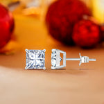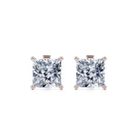 Certified 2 Carat Princess Cut Moissanite 4 Prong Solitaire Stud Earrings In 18K Rose Gold Plating Over Silver