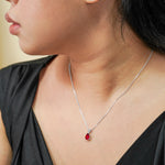 Start the greatest love story of your life with this Classic 2 Carat Round and Pear Cut Dangle - Ruby - July Birthstone Pendant Necklace in 18k White Gold over Silver, Women. Professionally handcrafted into a fine pear cut by our skilled jewelers, this exceptional pendant necklace integrates 2 carat in silver. Let's fulfill your love story with this moissanite solitaire pendant necklace and, surely, she will not regret it.