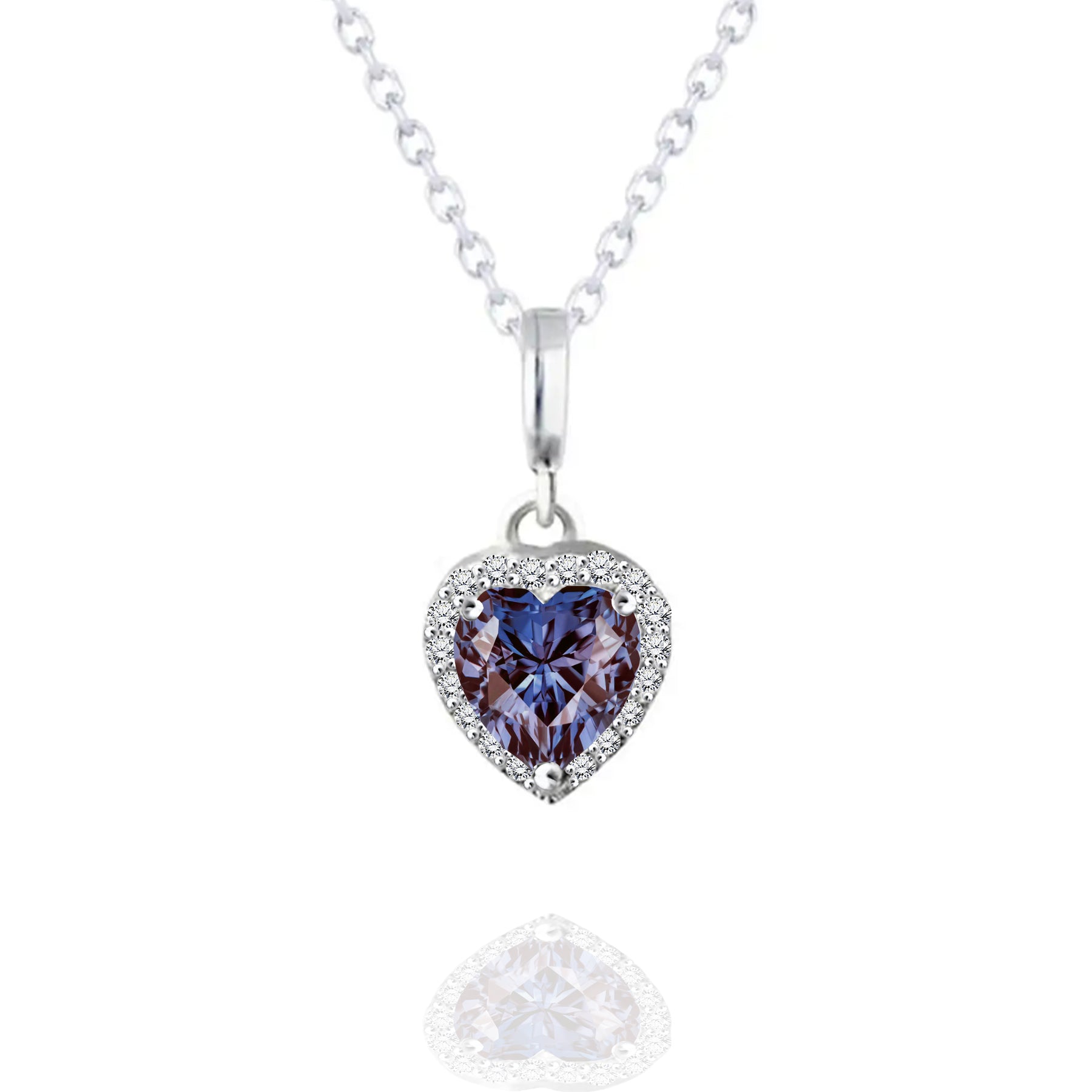 Forever Heart 1.5 Carat - Alexandrite - June Birthstone Pendant Necklace in 18K White Gold Plating over Silver