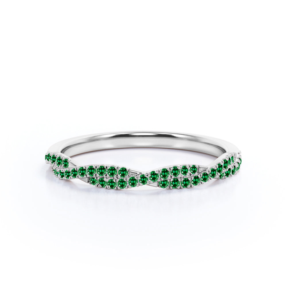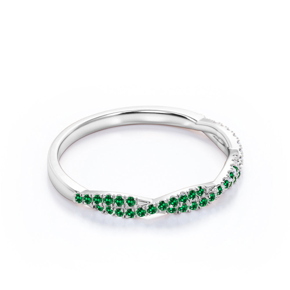 Half-Eternity 0.25 Carat Round Shape May Birthstone Emerald Pave Infinity Wedding Band in 18K White Gold over Silver