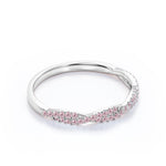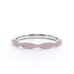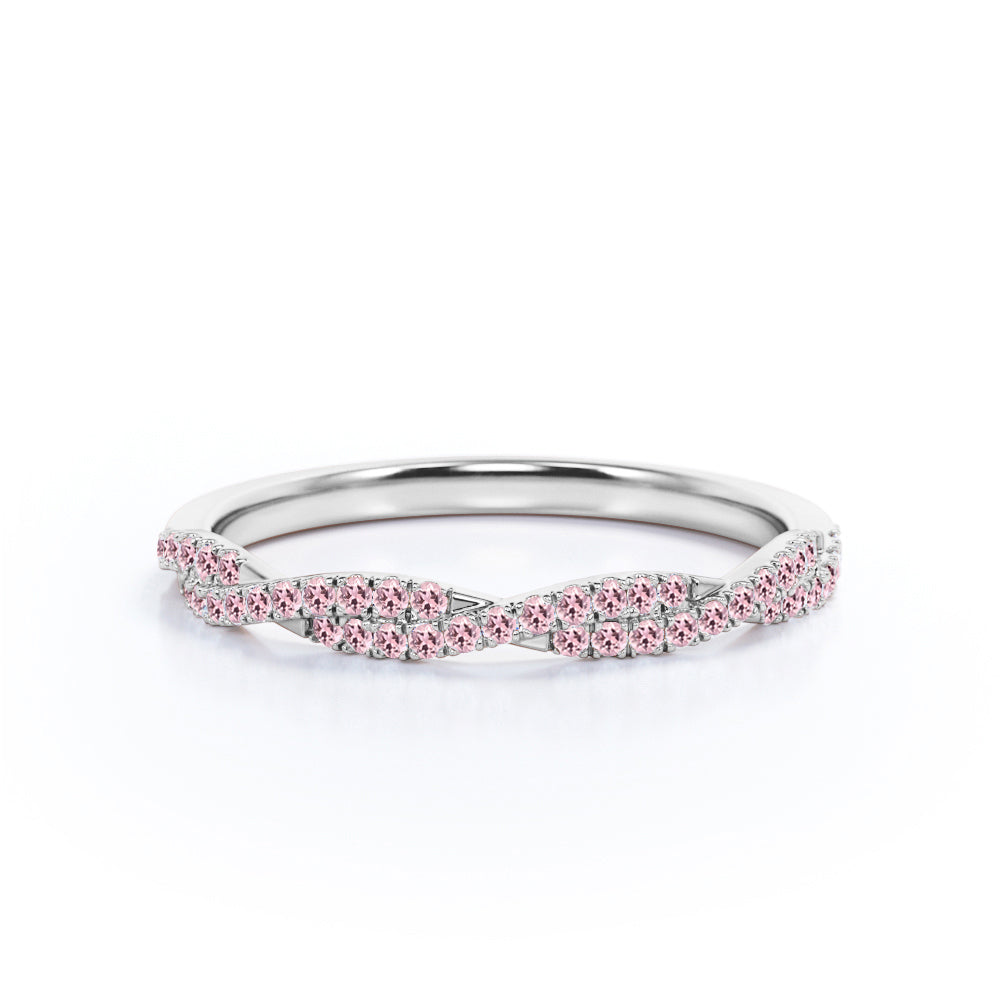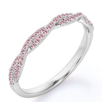 Half-Eternity 0.25 Carat Round Shape October Birthstone Pink Tourmaline Pave Infinity Wedding Band in 18K White Gold over Silver