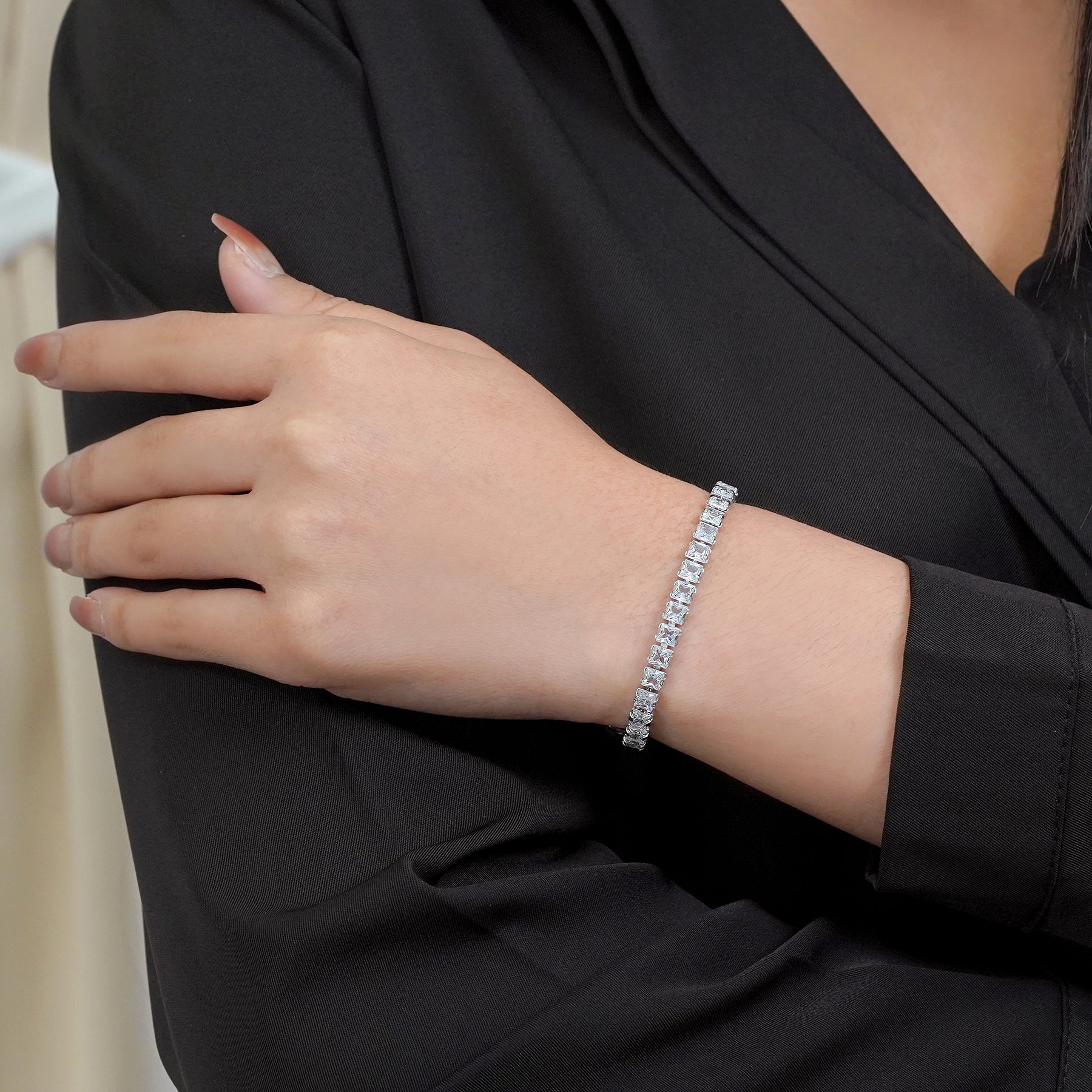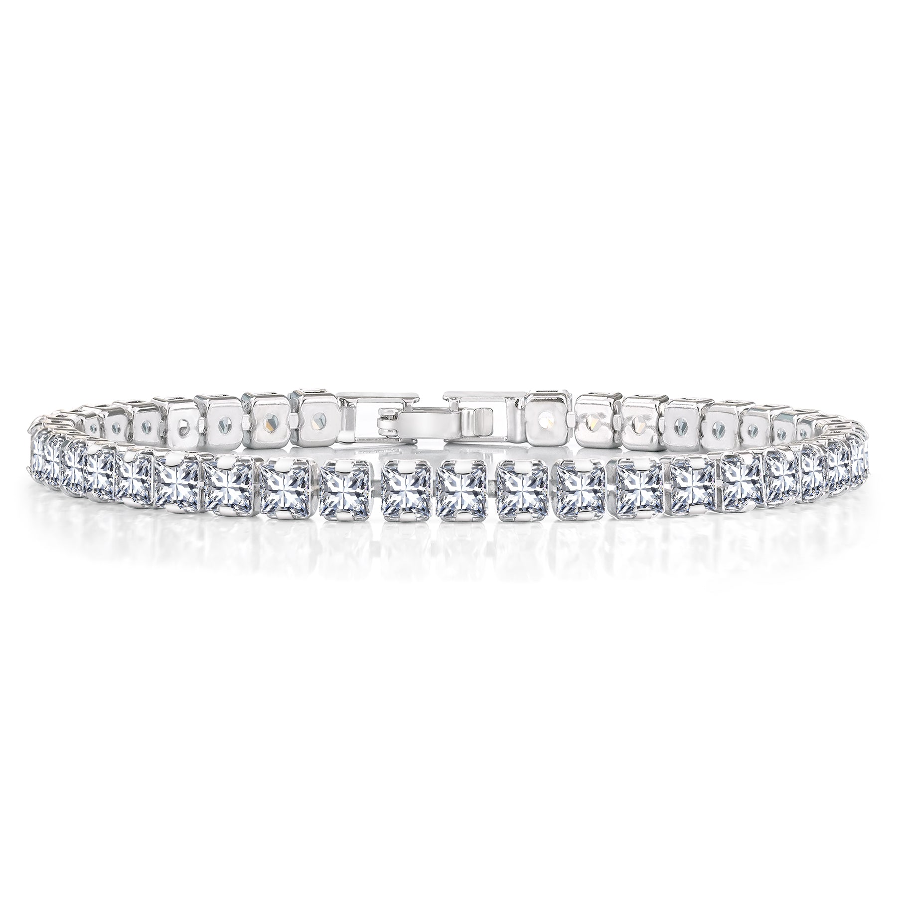Introducing our exquisite Huge 11 Carat Princess Cut April - Cubic Zirconia - Birthstone Tennis Bracelet for Women Eternity Design - White Gold Plating, Birthday, Anniversary, Valentine's Day Gift – a dazzling embodiment of elegance and sophistication. This Princess Cut Eternity Cubic Zirconia Tennis Bracelet is the epitome of timeless beauty, designed to add a touch of glamour to any ensemble. Crafted with precision and attention to detail, this April cubic zirconia bracelet features brilliant cubic zirconia stones meticulously set in high-quality white gold over brass. The result is a piece that effortlessly combines classic charm with contemporary allure, making it the perfect accessory for any occasion. Each cubic zirconia in this tennis bracelet is selected for its exceptional brilliance and sparkle of genuine diamonds. The stones are delicately arranged in a continuous line, creating a seamless and radiant display that will catch the eye of everyone around you.|Total Carat Weight (All Stones): 11 Carat|Bracelet Style: Tennis Bracelet|Gemstone Shape: Princess Cut|Metal Color: White|Occasion: Birthday, Anniversary, Mother's Day, Everyday Wear, Graduation, Valentine's Day, and More|Chain Length: 7.5 Inches|Condition: New|Age Group: Adult|Gender: Female