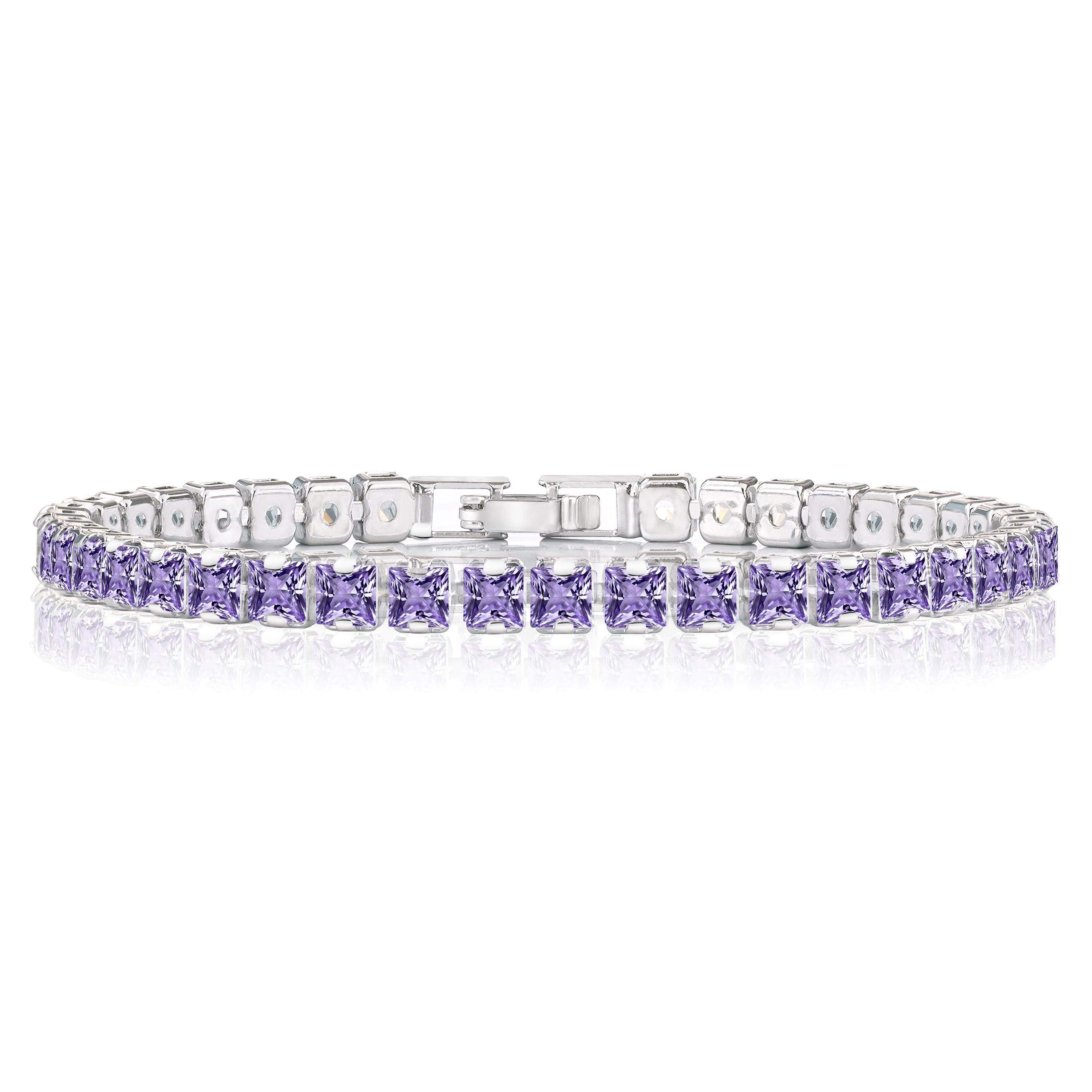Huge 11 Carat Princess Cut February - Amethyst - Birthstone Tennis Bracelet for Women Eternity Design - White Gold Plating, Birthday, Anniversary, Valentine's Day Gift