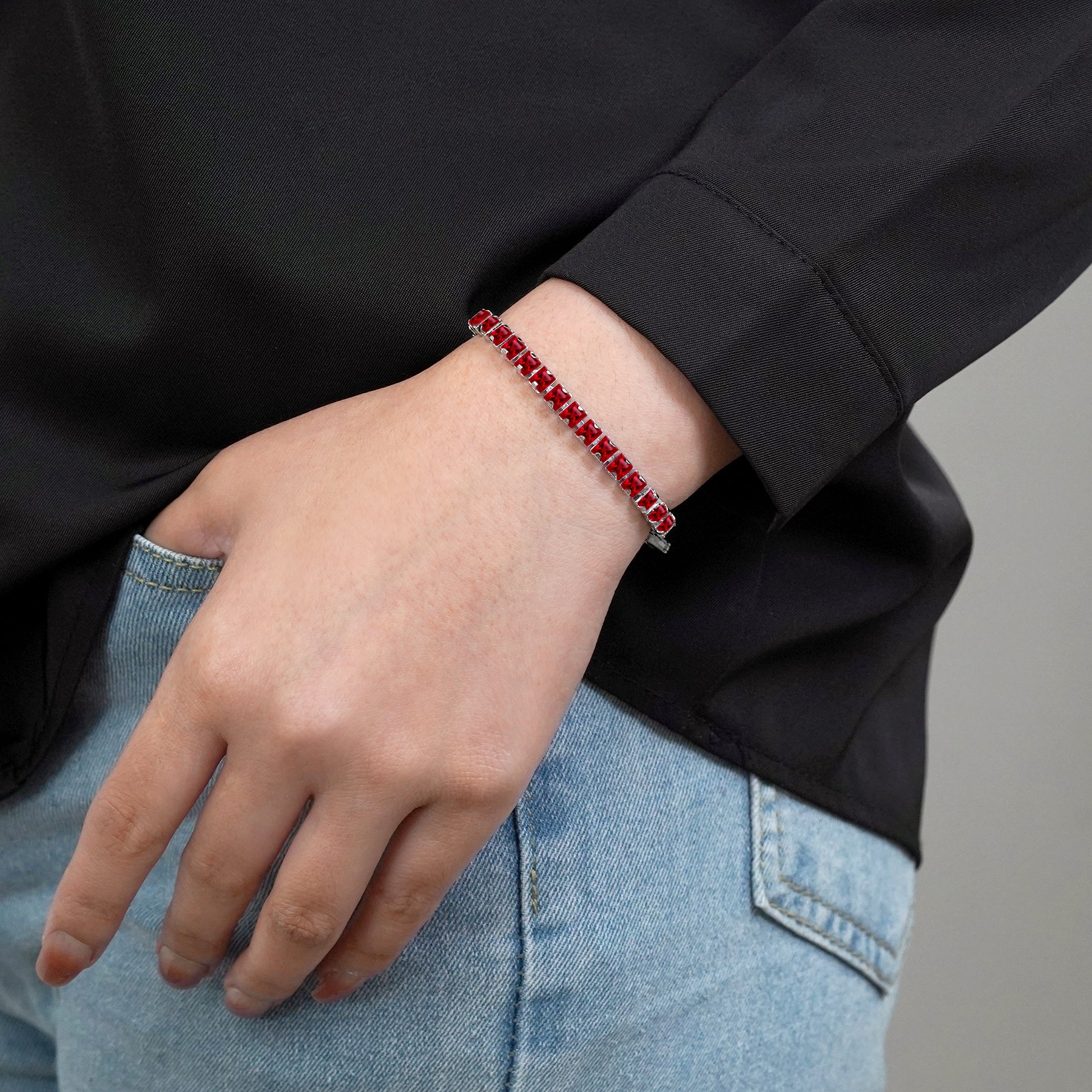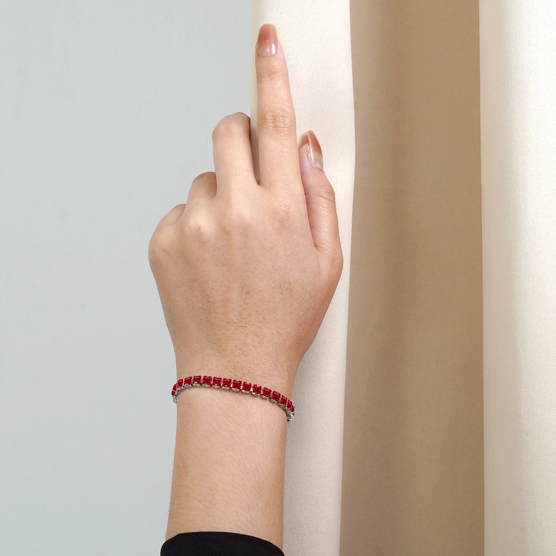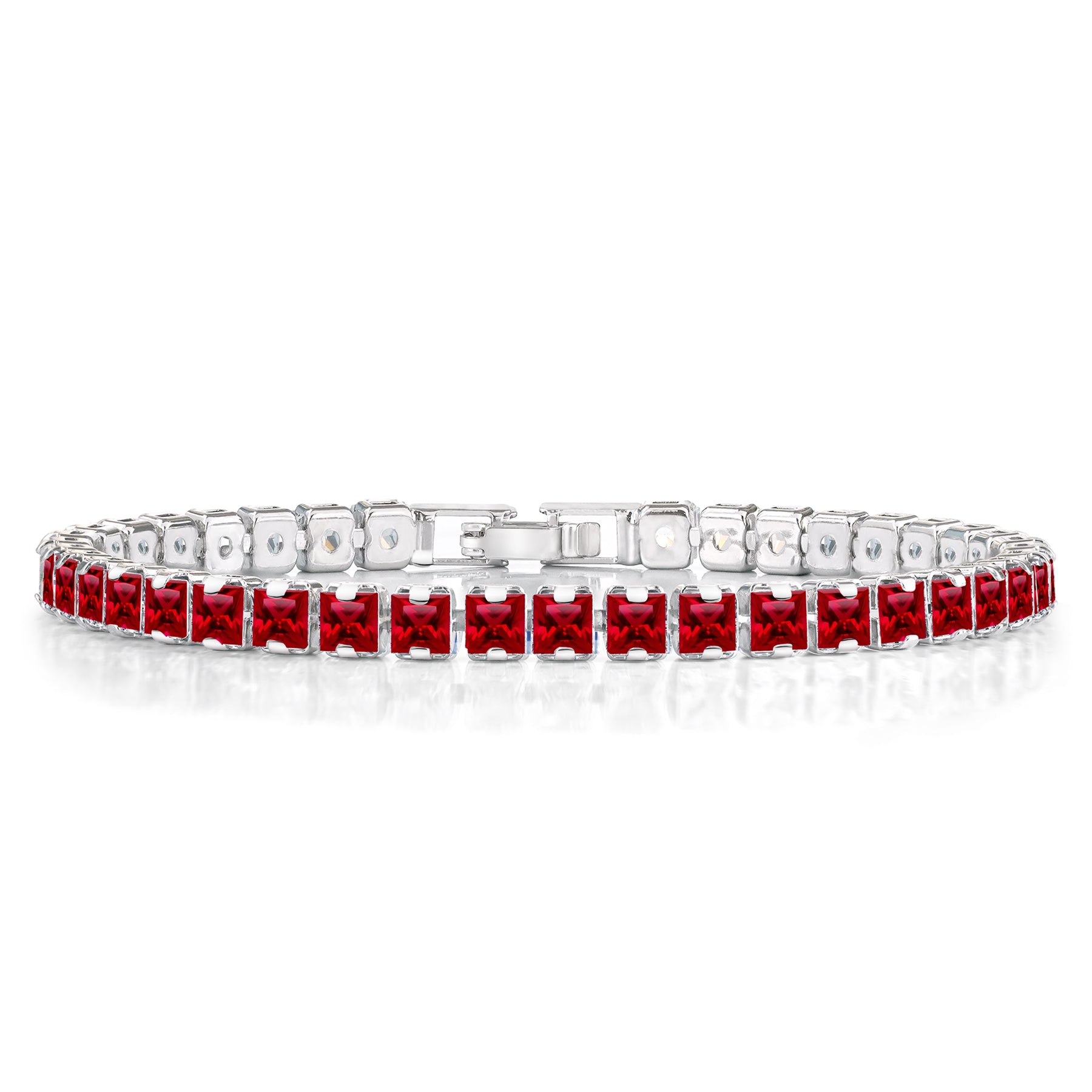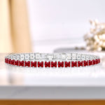 Huge 11 Carat Princess Cut July - Ruby - Birthstone Tennis Bracelet for Women Eternity Design - White Gold Plating, Birthday, Anniversary, Valentine's Day Gift