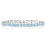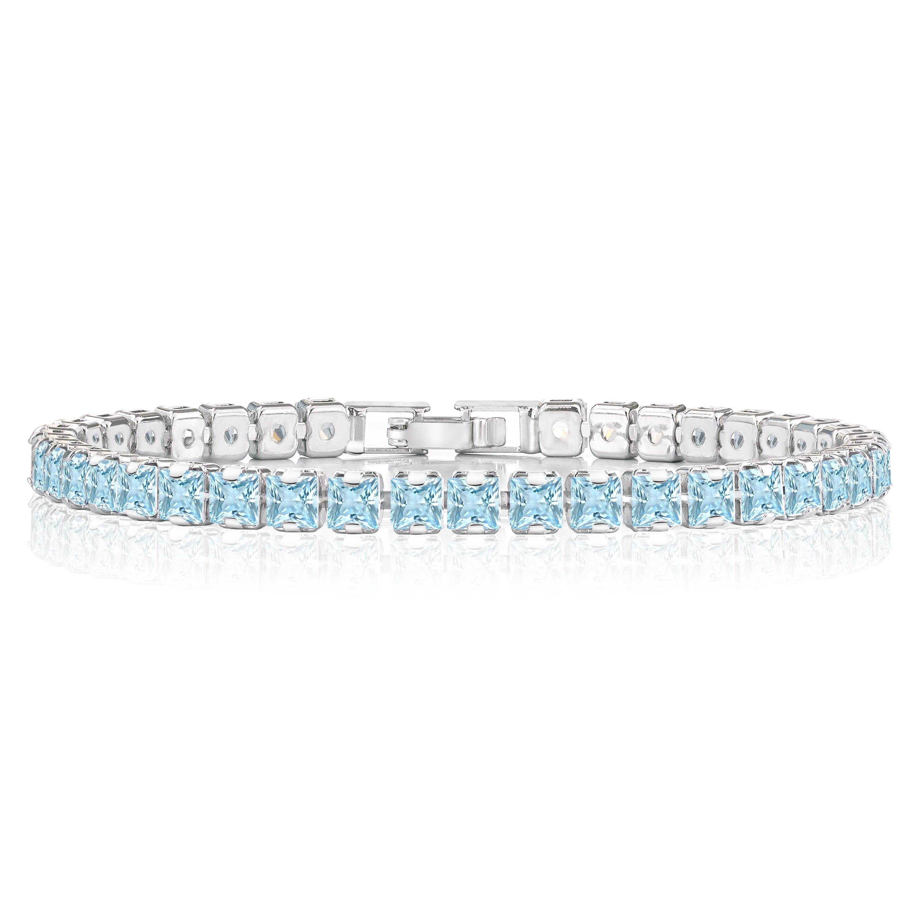 Huge 11 Carat Princess Cut March - Aquamarine - Birthstone Tennis Bracelet for Women Eternity Design - White Gold Plating, Birthday, Anniversary, Valentine's Day Gift