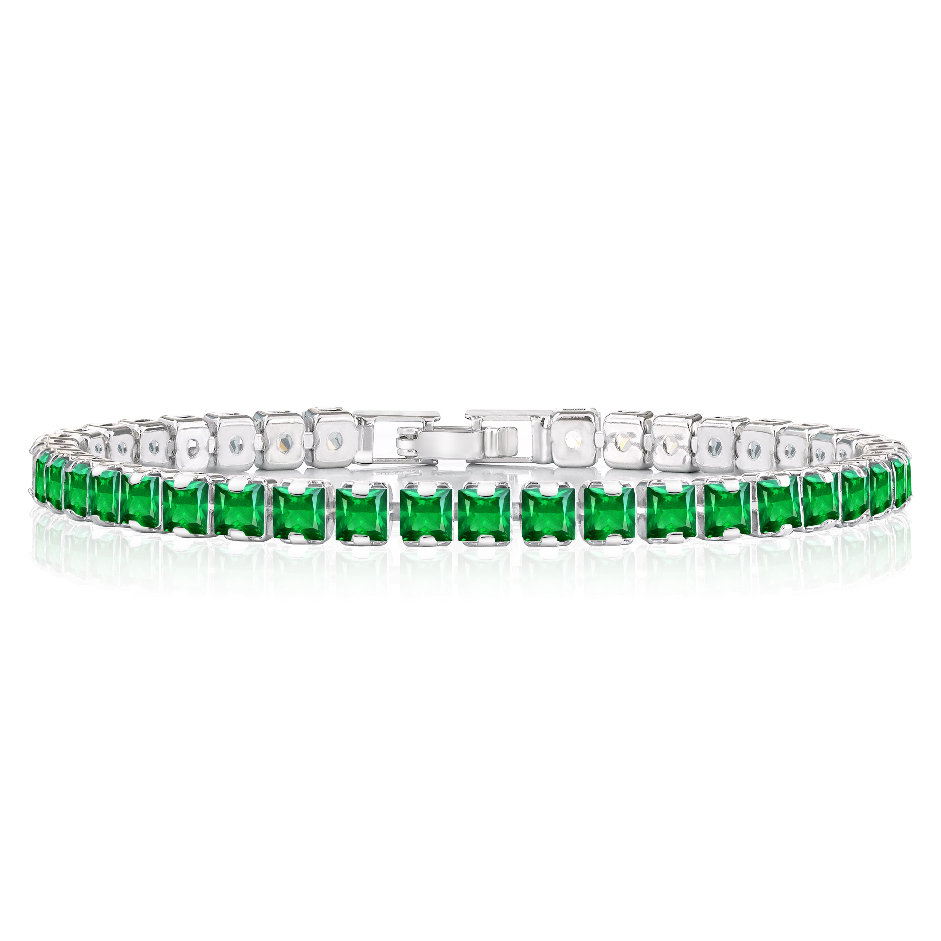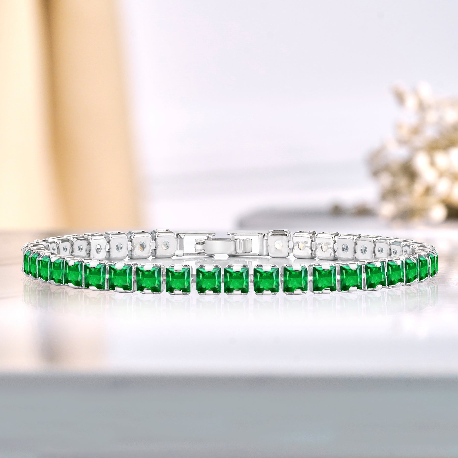 Huge 11 Carat Princess Cut May - Emerald - Birthstone Tennis Bracelet for Women Eternity Design - White Gold Plating, Birthday, Anniversary, Valentine's Day Gift