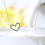 Open Heart Mom with Decorated Dark Green Stone Pendant Necklace in 18K White Gold over Silver - May Birthstone - Gift for Mom