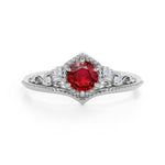 Artisan 0.75 ct Round Lab-Created Ruby Art Deco Engagement Ring