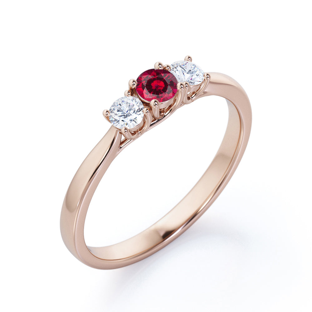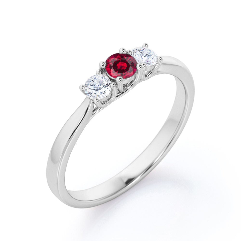 Trilogy 0.70 ct Round Lab-Created Ruby Engagement Ring