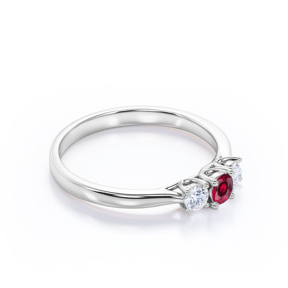 Experience the timeless elegance of our Classic Trilogy 0.7 Carat Round Cut Lab-Created Ruby and Diamond Engagement Ring in White Gold. This exquisite piece of handmade jewelry combines exceptional craftsmanship with affordability, making it a truly remarkable choice for your special occasion. A three stone ring is the epitome of timeless beauty and significance. Representing the past, present, and future of your relationship, it symbolizes the enduring love and journey you share together. With its dazzling round-cut lab-created ruby at the center, flanked by shimmering diamonds on each side, this ring is a captivating declaration of your love story. Customize your ring to perfection with our selection of metal colors. Available in white gold, rose gold, yellow gold, and black gold, as well as silver, 10k, and 14k gold metal variants, you can find the ideal combination that suits your style and budget. The side stones of this stunning ring vary based on the chosen metal variant. The silver metal option features enchanting moissanite side stones, radiating brilliance and charm. Alternatively, the 10k and 14k solid gold metal variants showcase exquisite diamond side stones, adding an extra touch of luxury. Embrace the allure and symbolism of a three stone ring, and let it serve as a cherished reminder of your unbreakable bond and the precious moments you've shared.