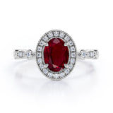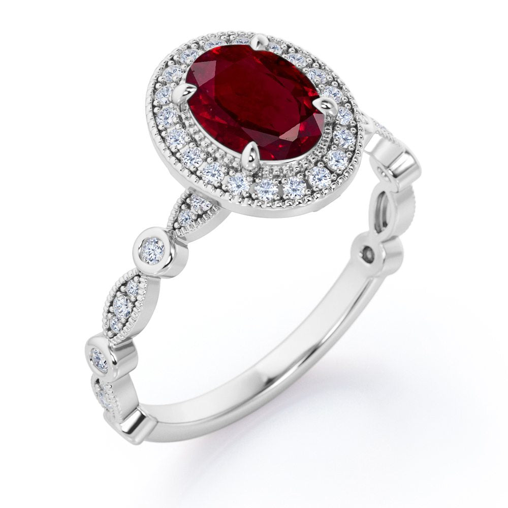 Vintage Halo 1.35 ct Oval Lab-Created Ruby Engagement Ring
