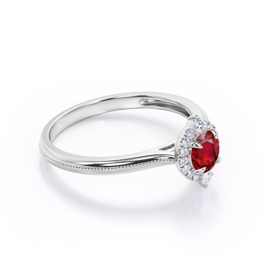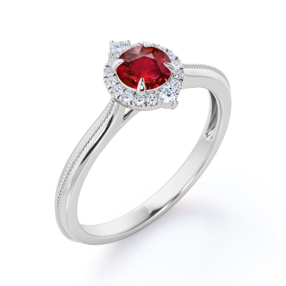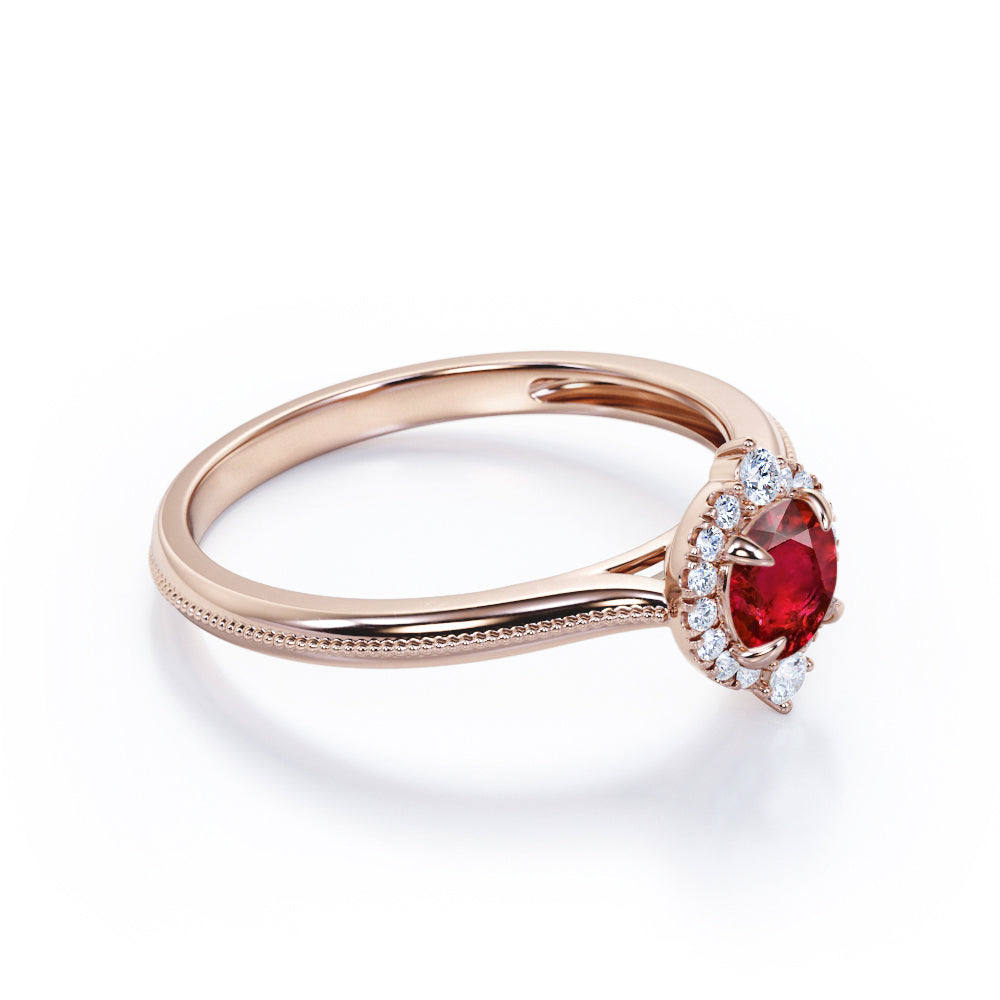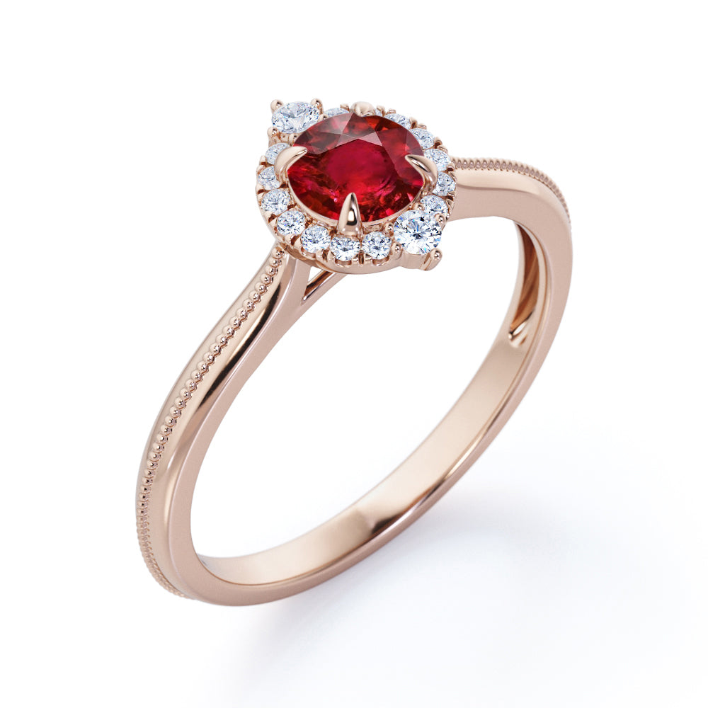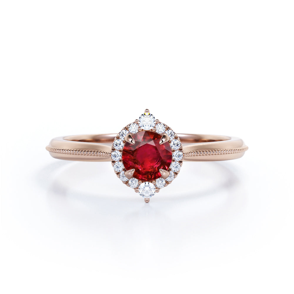 Milgrain 1.10 ct Round Lab-Created Ruby Halo Engagement Ring