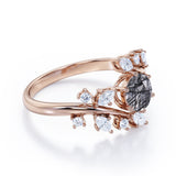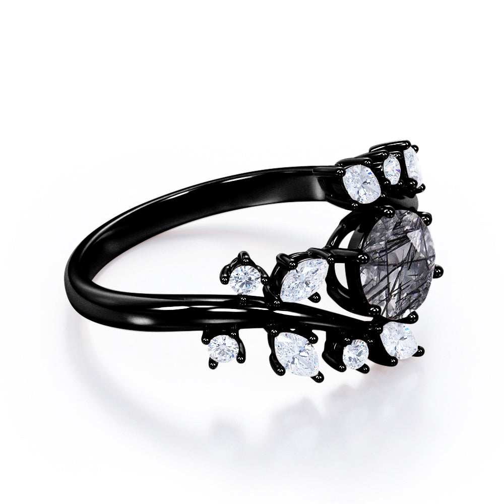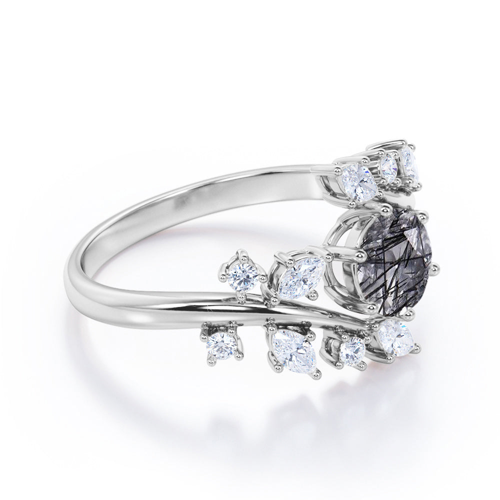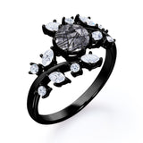 Floral 1.35 ct Round Black Rutilated Quartz Engagement Ring