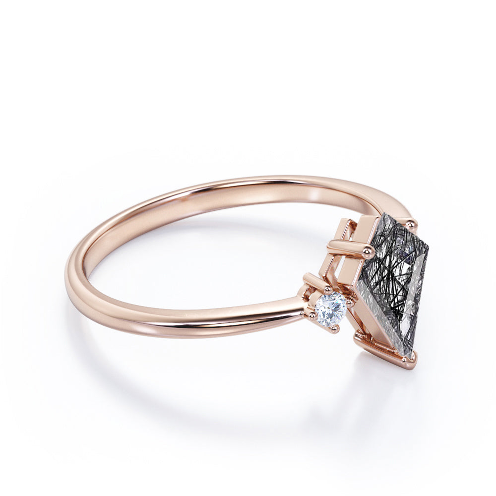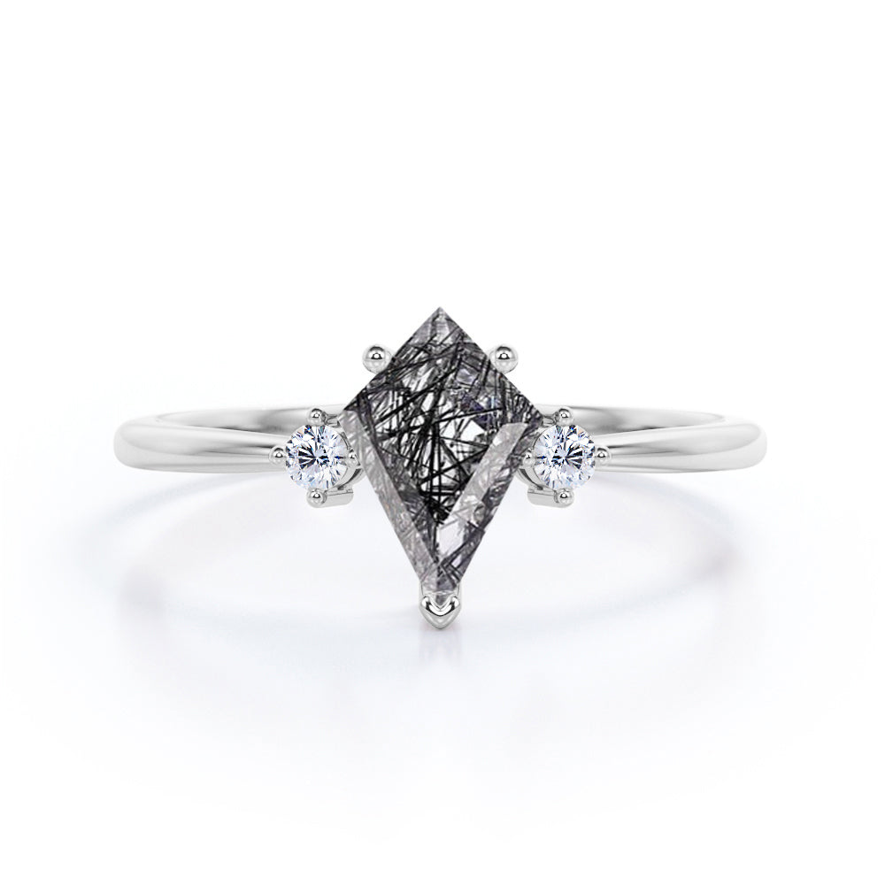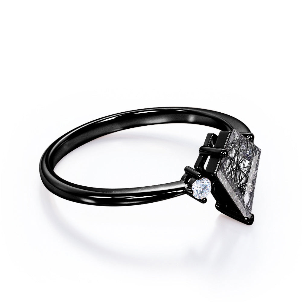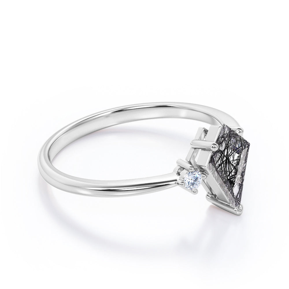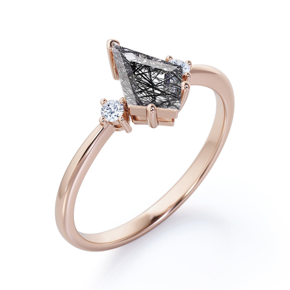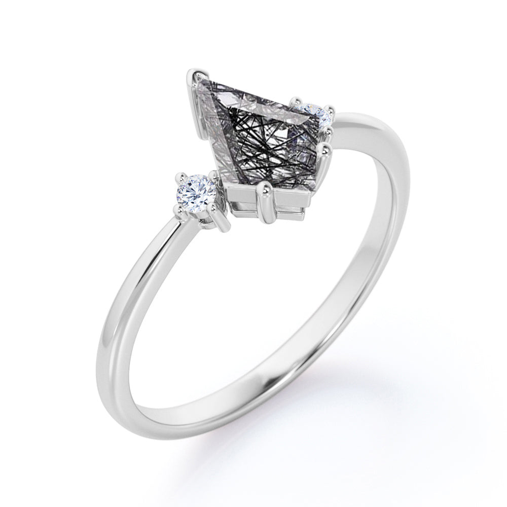 Trilogy 1.10 ct Kite Shaped Black Rutilated Quartz Engagement Ring