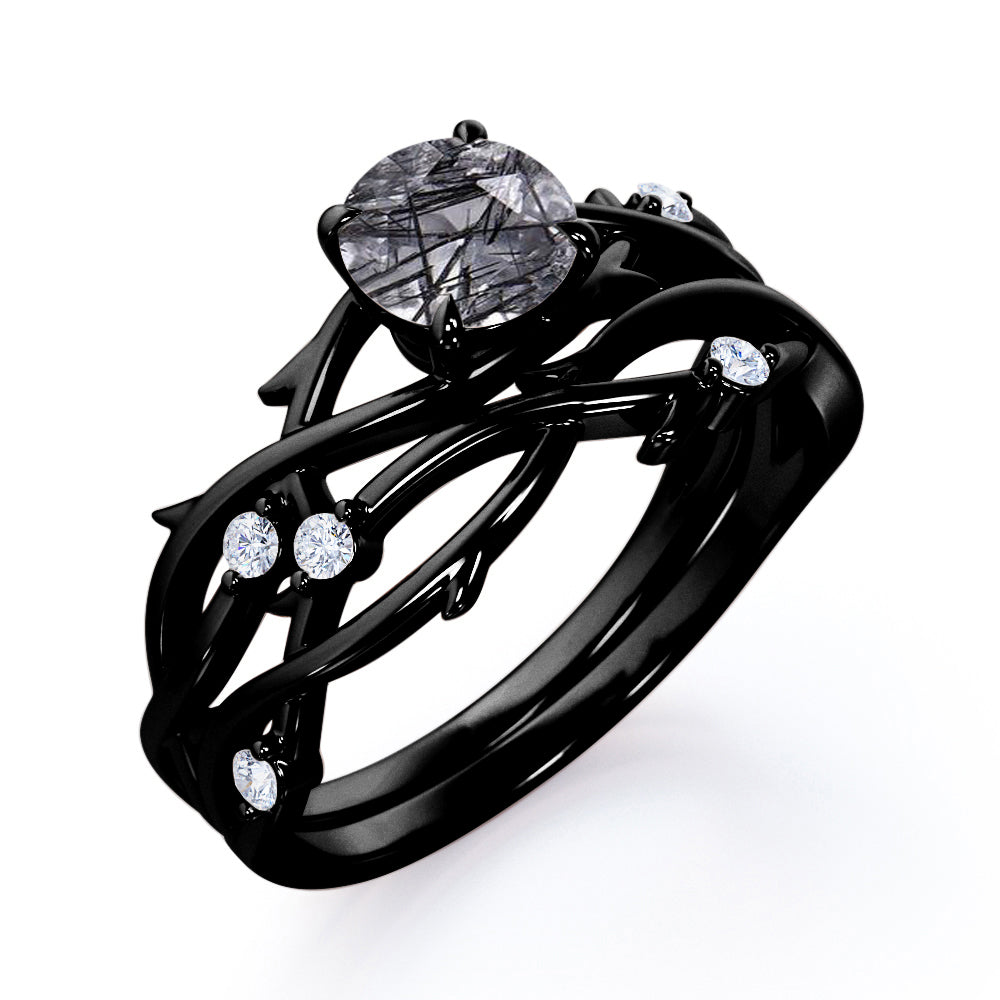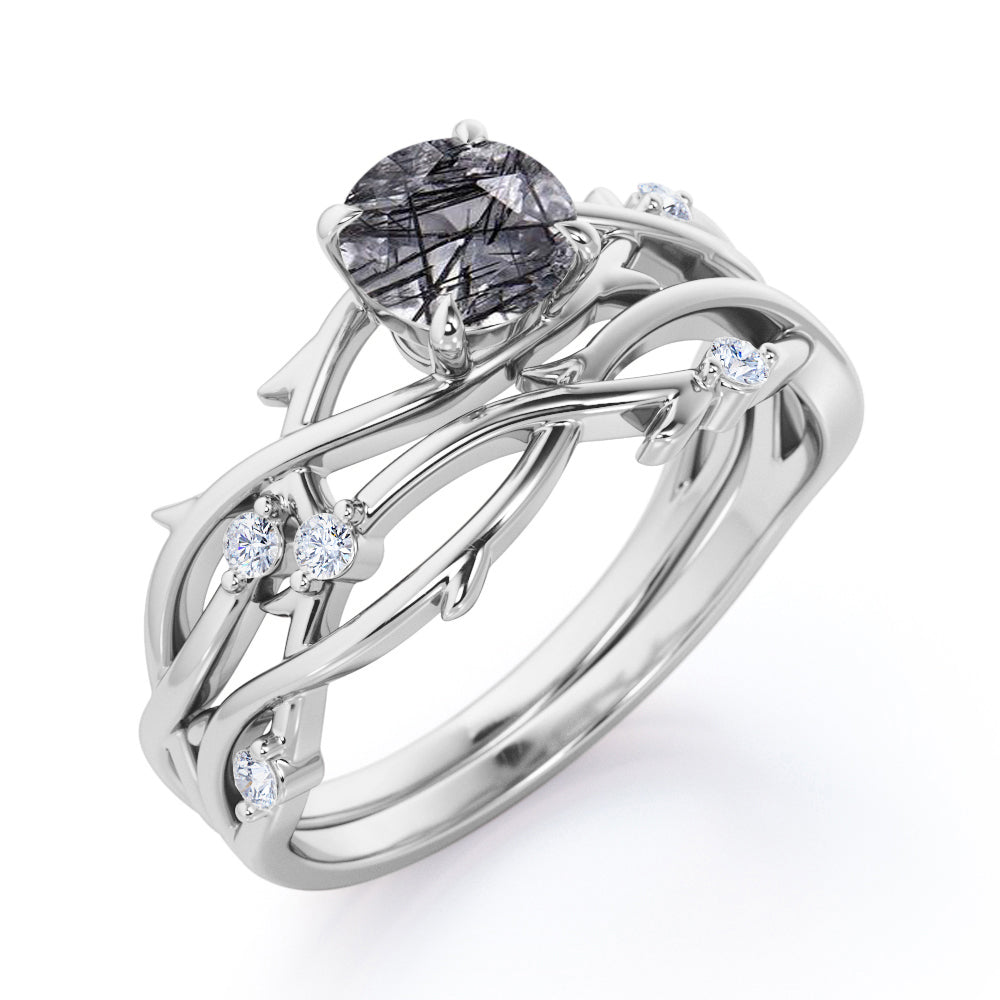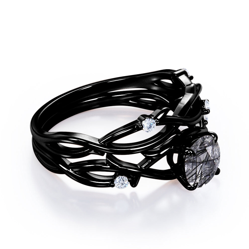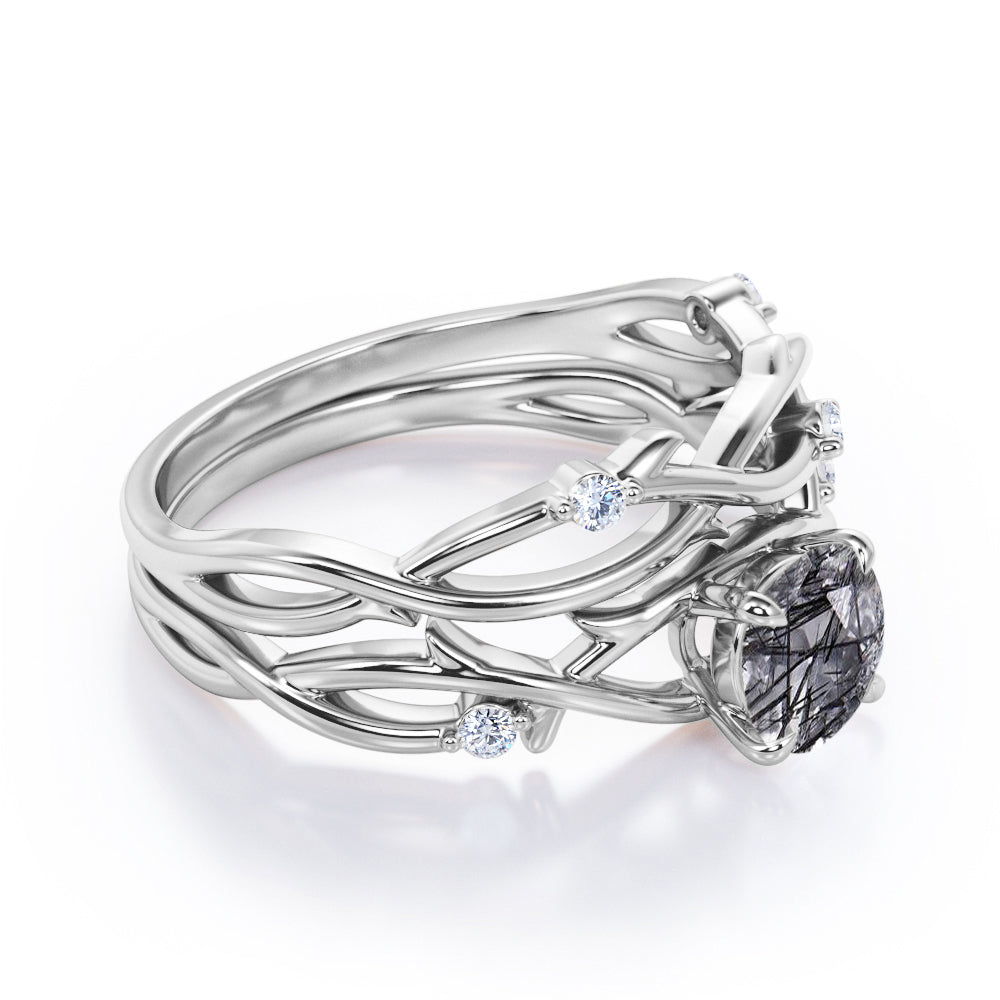 Twisted Leaf 1.15 ct Round Black Rutilated Quartz Infinity Bridal Set