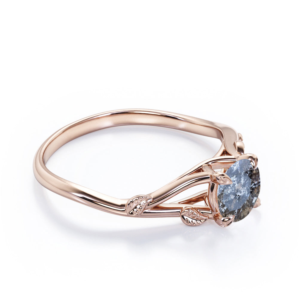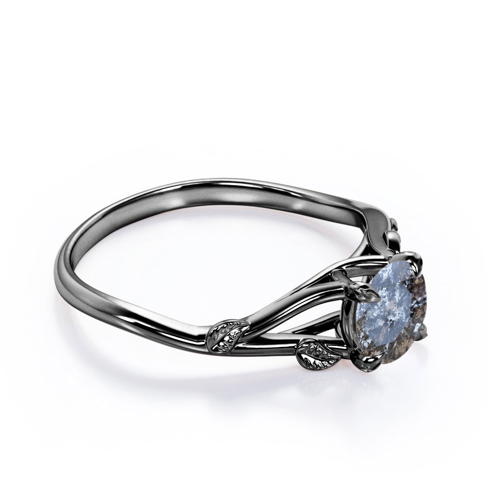 0.33 Ct Round Cut Salt and Pepper Diamond Leaf Engagement Ring