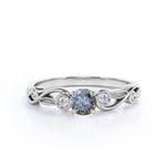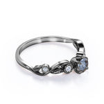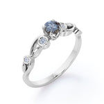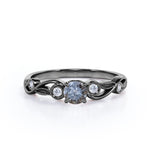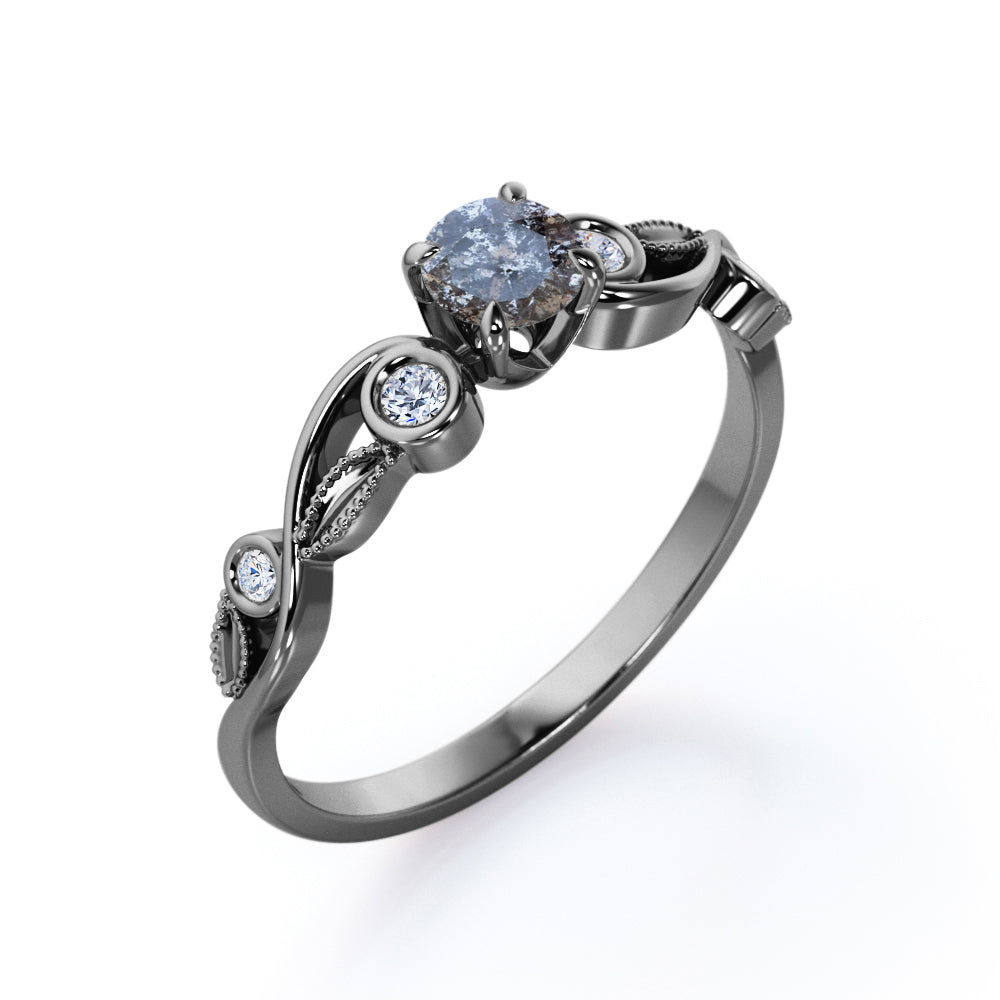 IMPORTANT NOTE: Since each Salt and Pepper Diamonds is one of a kind, the actual color of it may vary from the one that is pictured above. Embellish your love story with the uniqueness of this Vintage Leaf Nature-Inspired .75 Carat Round Cut Natural Fancy Galaxy Grey Salt and Pepper Diamond Bezel Set Milgrain Engagement Ring in White Gold. This nature-inspired leaf design genuine fancy grey Salt and Pepper Diamond engagement ring features .50 carat round cut natural Salt and Pepper Diamond and .25 carat real side diamond for gold ring and moissanite for silver ring. This vintage Milgrain decorated Salt and Pepper engagement ring can be customized to either 10k, 14K and Gold over Silver and either Black Gold, Rose Gold, White Gold or Yellow Gold. Also, as your satisfaction is our most priority, we will do our best to have your handmade jewelry be carefully and beautifully crafted by our expert jewelers. The order also comes with a 30-day full refund policy. Enrich your charm and charisma with this vintage dark grey Salt and Pepper Diamond ring for women that is excellent for everyday wear. With its unique colors and inclusions, this natural grey Salt and Pepper will bring more personal touch to the traditional ring. With no two diamonds exactly alike, Salt and Pepper Diamond gives each ring character and style. If you are searching for some alternate gemstone with unique appearance, this Salt and Pepper Diamond ring will be your right choice. Salt and Pepper Diamonds are eco-friendly, ethical, and environmental friendly. Its inclusions will distinguish your ring offering a unique look on your finger . If you are in search of a unique gift for any occasion, this stunning Salt and Pepper Diamond ring is the best answer for you. Design and create your very own unique Salt and Pepper Diamond ring that makes you outstanding from the rest! Sparkle your finger with this ring which is perfect for any occasion and everyday wear. With its mesmerizing salt and pepper inclusions, it is sure to enchant your special someone with gracefulness.