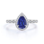 Limited Time Sale: 1.50 Carat pear cut Blue Lab-Created Sapphire and Diamond Engagement Ring. The beautiful Lab-Created Sapphire Engagement Ring is made with Lab-Created sapphire, real diamonds, and on real solid Gold. The sapphire diamond engagement ring comes with its jewelry certificate, and 30 days full refund policy. The beautiful Lab-Created blue sapphire diamond engagement ring will definitely please her at the very first sight.