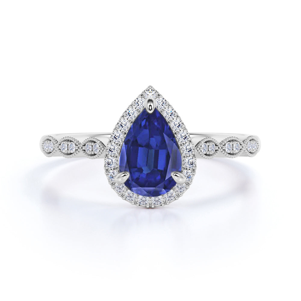 Art Deco 1.50 Ct Pear Cut Lab Sapphire Engagement Ring