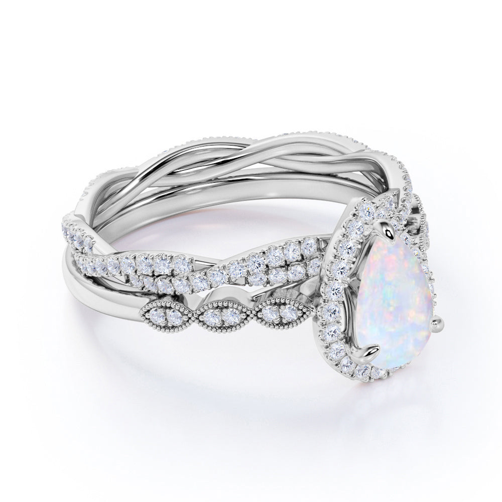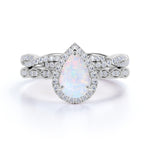 Vintage 1.5 Ct Pear Cut Lab Created Opal Wedding Ring Set
