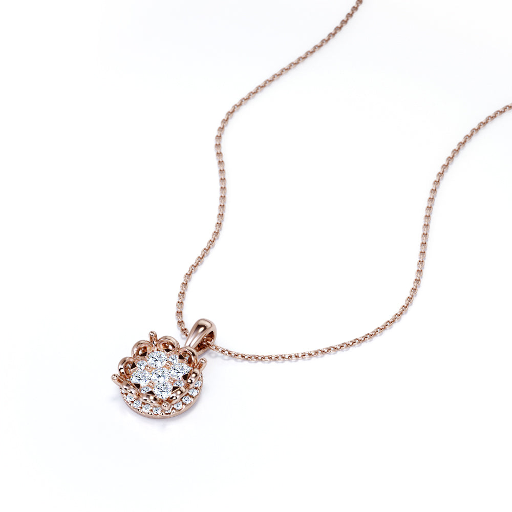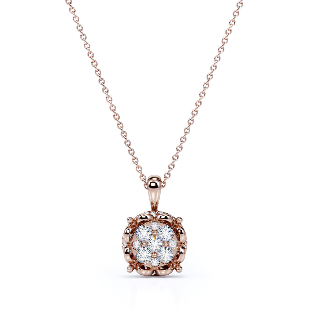 Stylish Blooming flower 0.5 carat Round Moissanite/ Diamond Pendant with 18k Rose Gold Over Silver