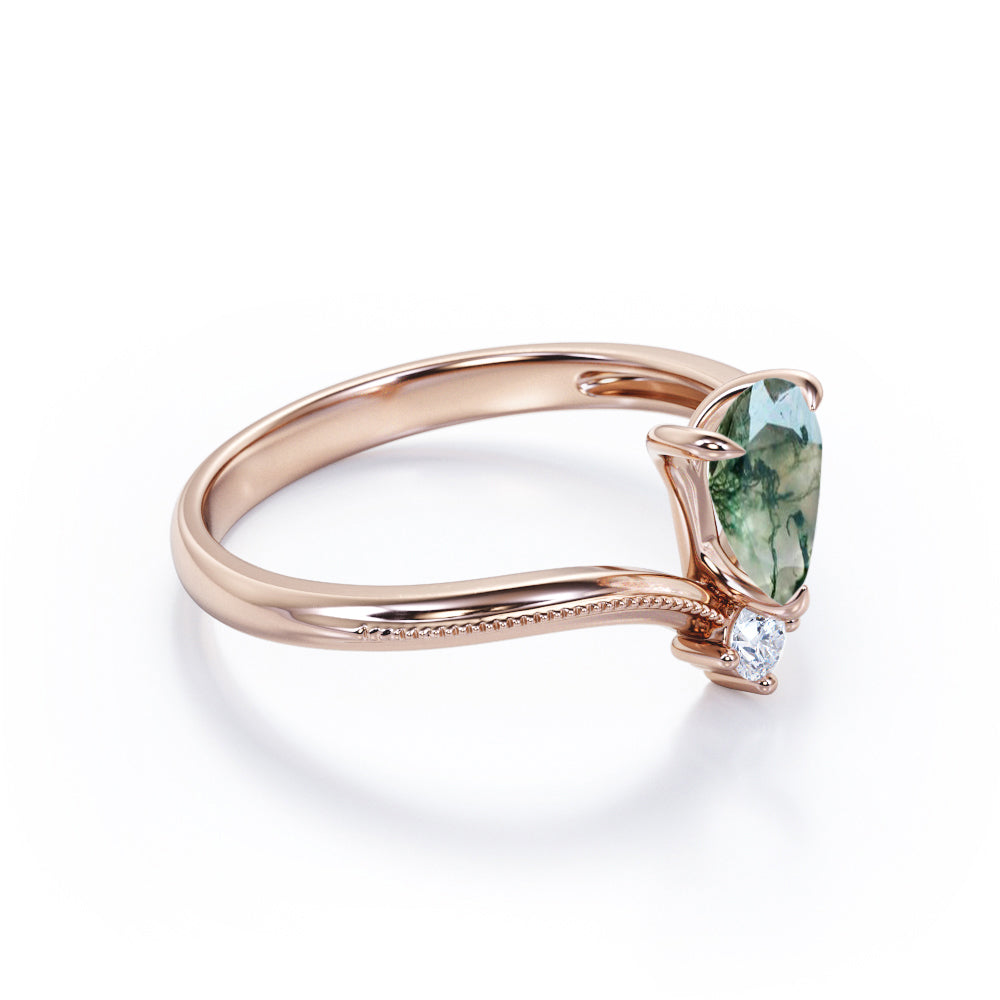 Chevron 0.6 Carat Pear Green Moss Agate Engagement Ring