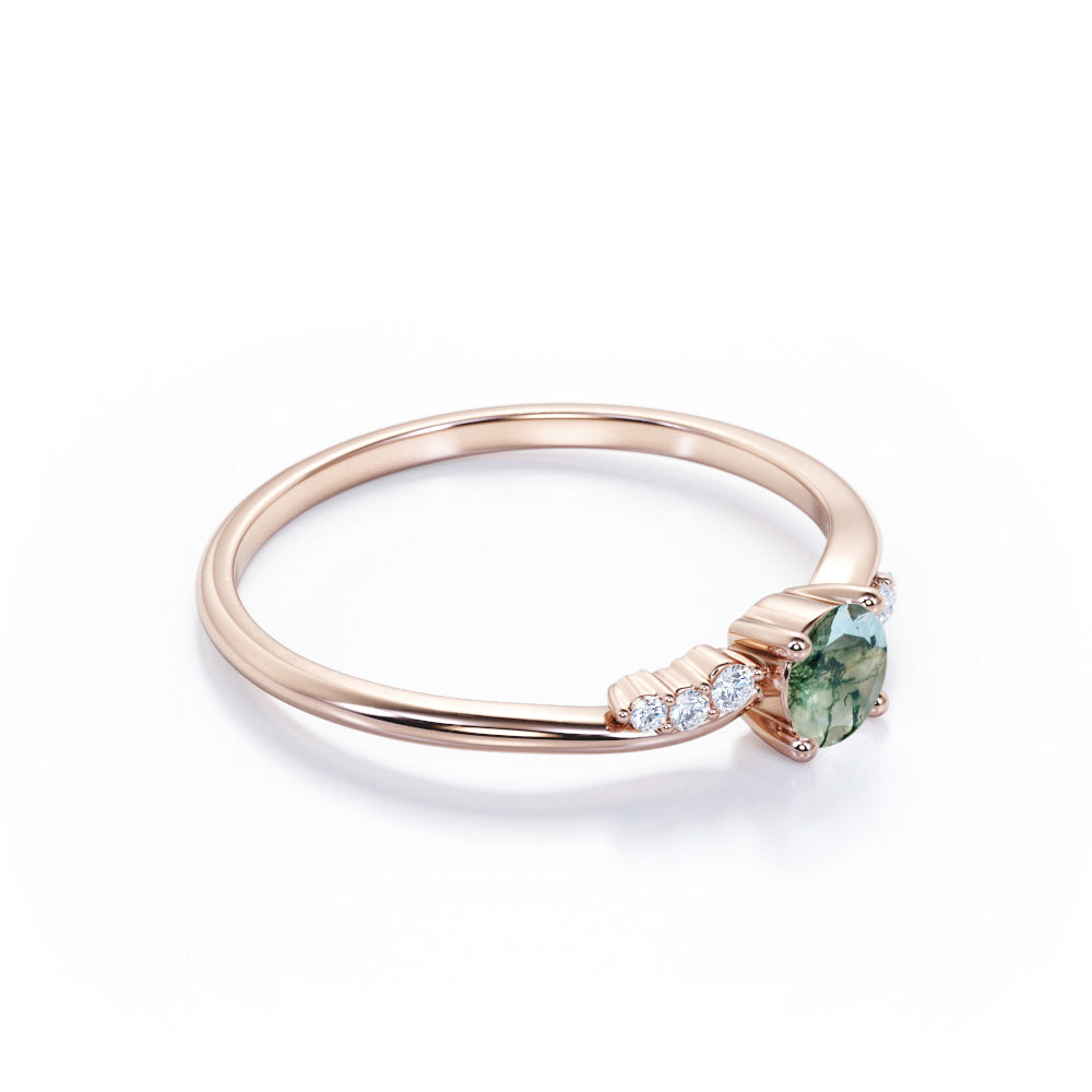 7 Stone 0.55 Carat Round Moss Agate Engagement Ring