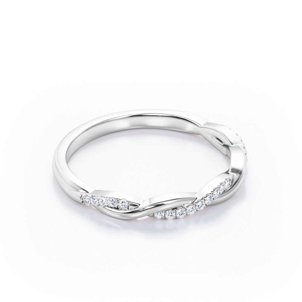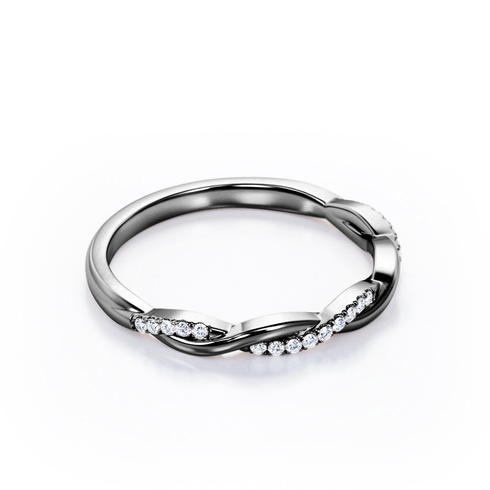 With this Half-Eternity Infinity 0.15 TCW Round Brilliant Cut Diamond Wedding Band with Pave Accents, you can begin the most romantic chapter of your life. Hand-cut with deftness into a lovely shape round cut by our most talented jewelers, this alluring affordable diamond wedding band integrates total 0.15 carat diamond. For those looking for something a little out of the ordinary, this affordable diamond wedding band is an excellent choice. Refracting qualities of this diamond band will bring joy and good energy to its wearer. Beautiful and affordable, this diamond wedding band for women is stunning and inexpensive, thanks to its reasonable price. If you are looking for a diamond ring for any special event, such as a birthday, an engagement, or a marriage proposal, this diamond wedding ring band , the birthstone ring for April, symbolically represents love and dedication, is the best gift you can give to your significant other. This wedding band can be customized in 18K white, rose, yellow, or black gold over silver, or in 10K, 14K, and 18K gold, based on your preference.