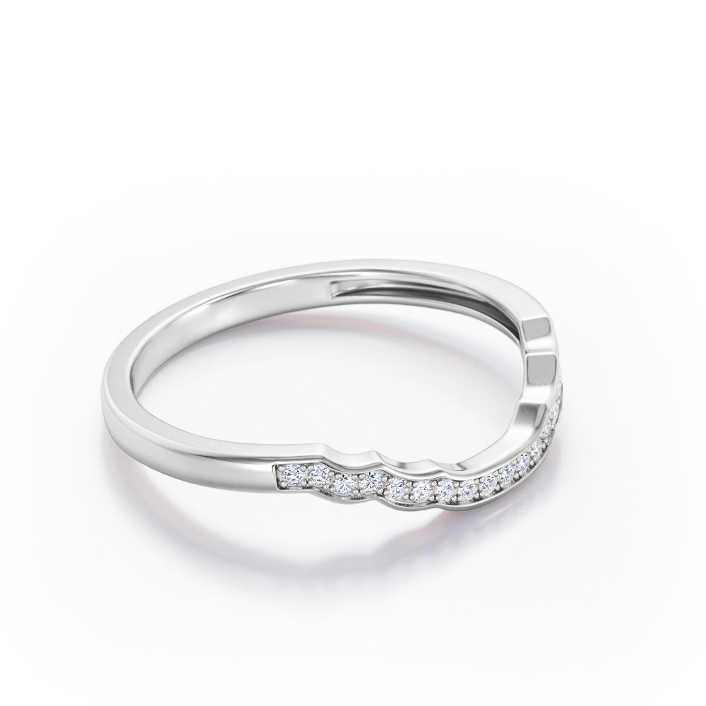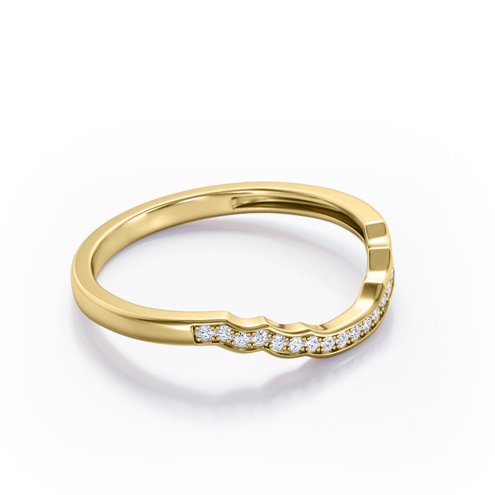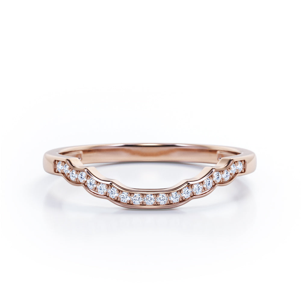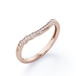 0.15 TCW Round Cut Diamond - Pave Channel Design - Curved Shank Starlight Wedding Band - 10K Rose Gold