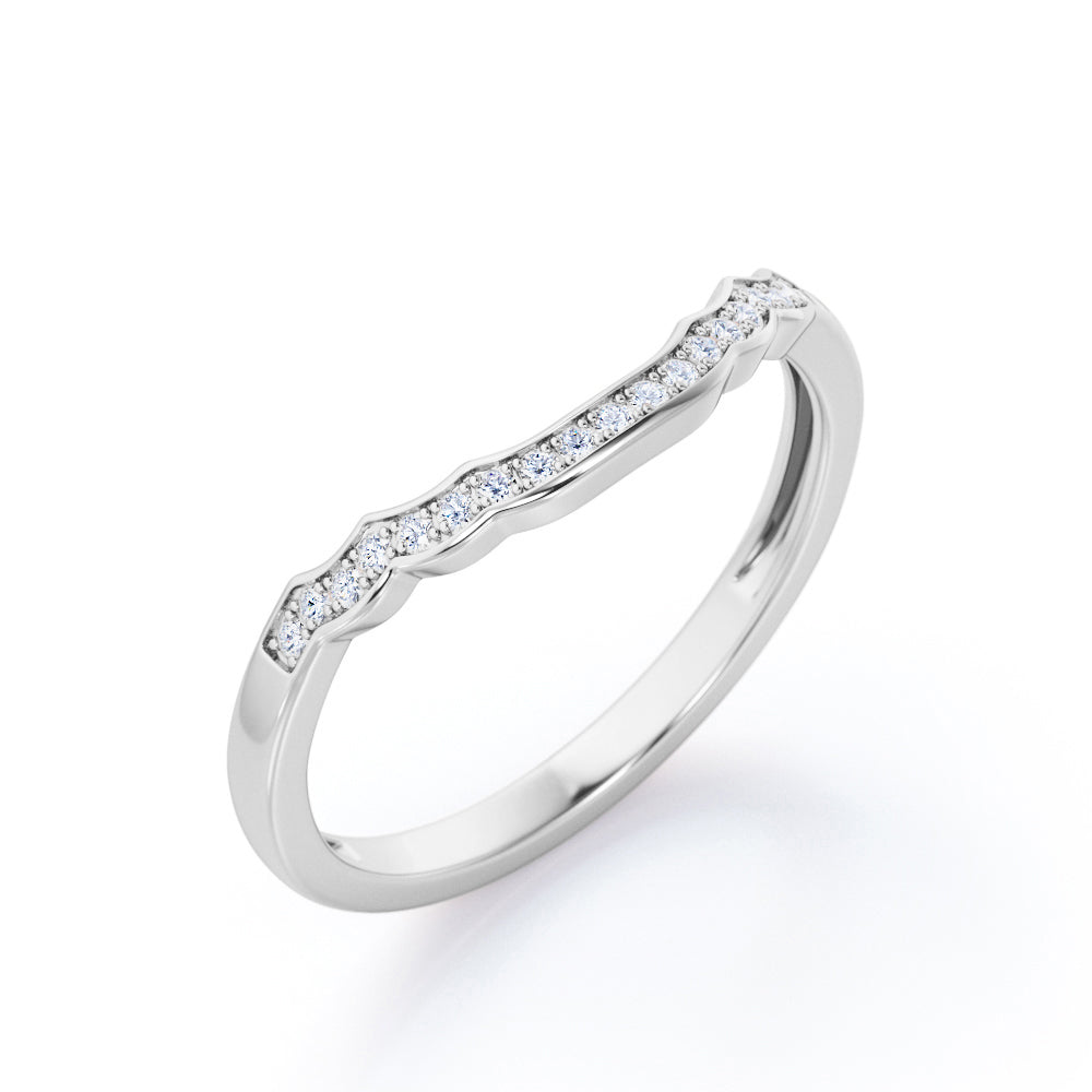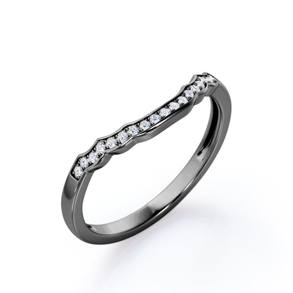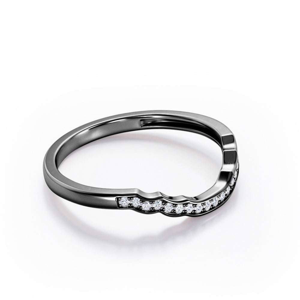 Adorn her finger with this 0.15 TCW Round Cut Diamond - Pave Channel Design - Curved Shank Starlight Wedding Band - 10K Rose Gold. Hand-cut with deftness into a lovely shape round cut by our lapidary expertise, this beautiful inexpensive diamond wedding band consists of total 0.15 carat on solid rose gold. Distinct and unusual, this diamond band is ideal for those who wish to express their charisma and uniqueness. This diamond wedding ring band will accentuate any outfit the wearer chooses to put on. This cheap diamond wedding band is stunning and inexpensive, thanks to its reasonable price. Our diamond wedding band is a great option if you are in search for something truly special to give to your special someone. Also, this diamond band for women can be customized to your own choice of metal colors: 10K rose gold, 10K white gold, 10K black gold, or 10K yellow gold. Your love story will be complete with this diamond wedding band.