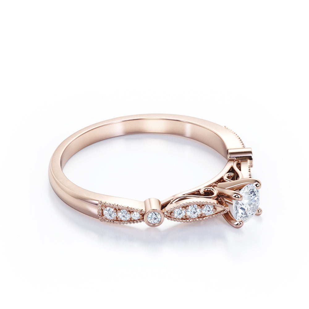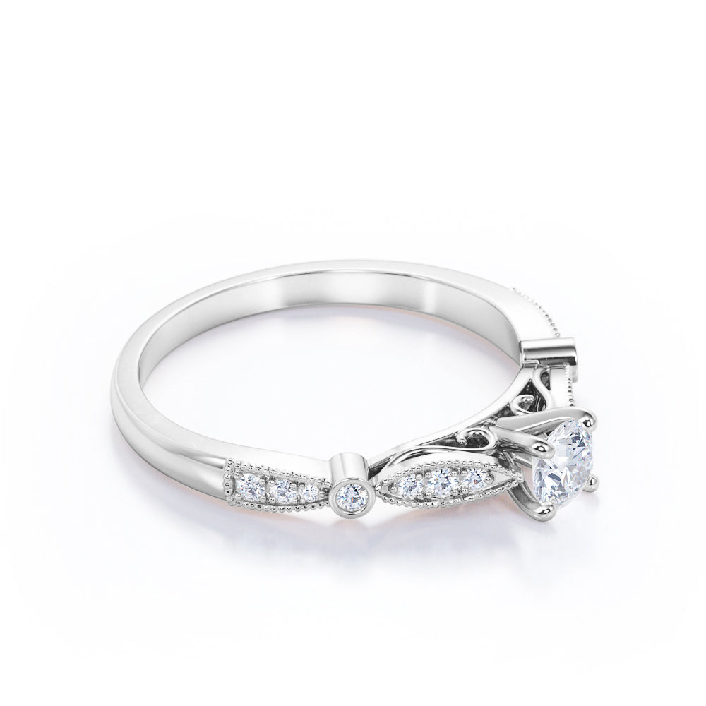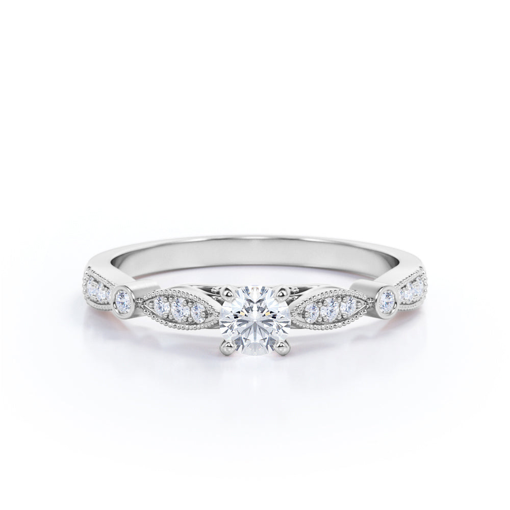 Certified Art Deco 0.50 Ct Round Lab Diamond Engagement Ring