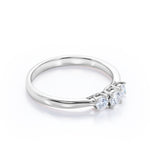 This 0.5 carat round cut Certified Lab Diamond with side stone Moissanite three stone engagement ring in white gold is the perfect gift to show your deep love and affection. Representing a couple's past, present, and future, this classic ring exhibits strong brilliance and sparkle. The pave setting ensures a distinctive look that will make you stand out. Handmade by our artisans with love and attention to detail, it can be customized to 10k, 14k, or 18k gold in white, rose, yellow or black gold metal color as per your preference. Each ring is meticulously crafted by expert jewelers and comes with a 6-month limited warranty, a 30-day full refund policy, and 30-day free resizing.