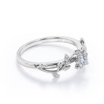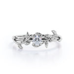 0.5 Carat Leaf Branch Round Moissanite Nature Inspired Engagement Ring in 18K White Gold Plating Over Silver