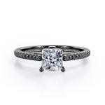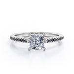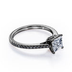With this 1.25 TCW Princess Cut Moissanite with Lab Created Black diamond - Pave Setting - Prong Engagement Ring in Rose Gold, you can begin the most romantic chapter of your life. Handcrafted with care into a wonderful princess cut by our lapidary expertise, this affordable Moissanite statement ring showcases total 1.25 carat Moissanite with lab-created Black diamond side stones on solid white gold. For those looking for something a little out of the ordinary, this affordable engagement ring for women is an excellent choice. This Moissanite ring for women will accentuate any outfit the wearer chooses to put on. This affordable Moissanite ring is stunning and inexpensive, thanks to its reasonable price. Our vintage moissanite ring is a great choice. Also, this Moissanite ring for women can be customized, so customers can choose one of metal colors between White gold, rose gold, yellow gold and black gold in 18k Gold over silver, 10k and 14k gold metal options. Let's show her how much you care by giving her this affordable engagement ring for women.