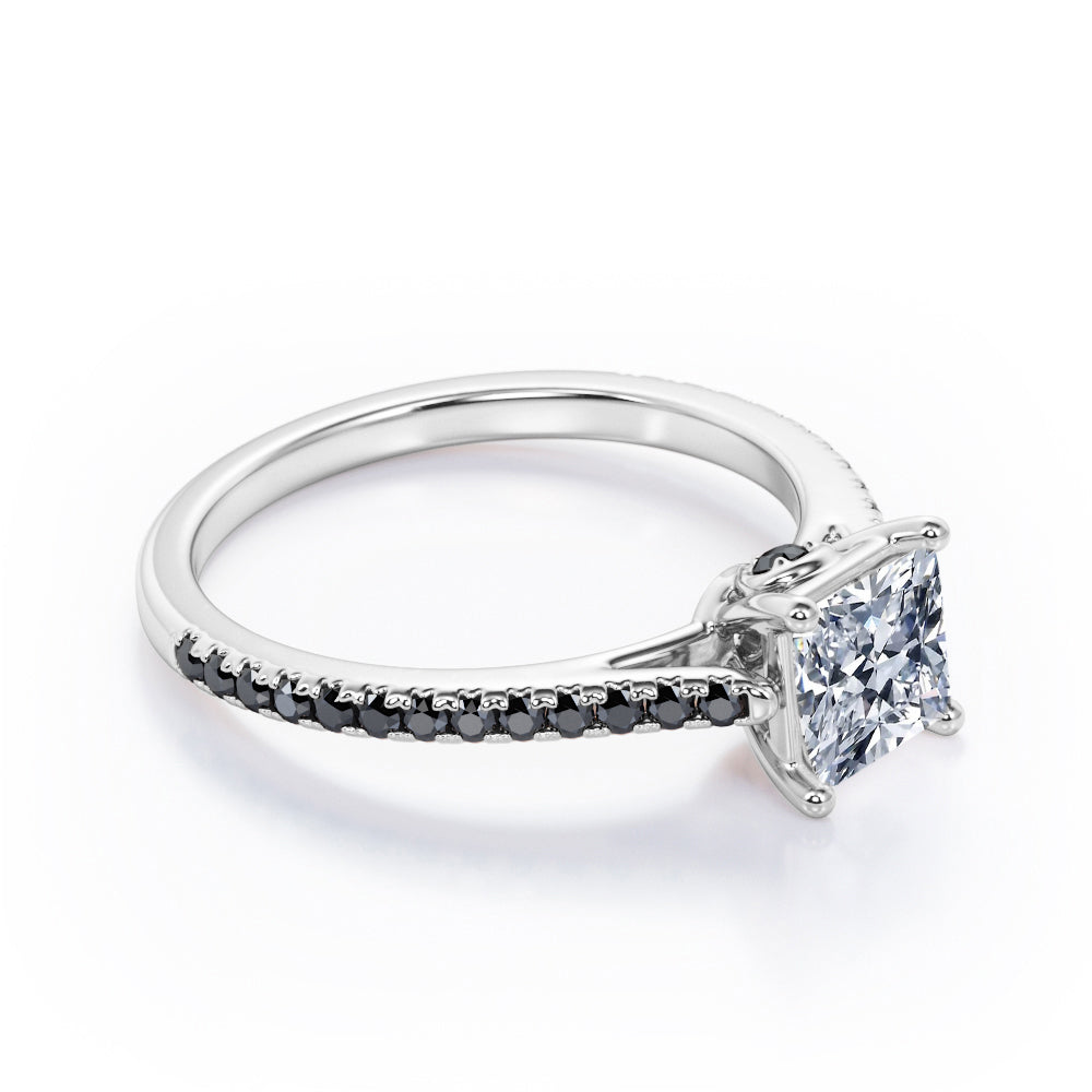 1.25 TCW Princess Cut Moissanite with Lab Created Black Diamond - Pave Setting - Prong Engagement Ring in Rose Gold