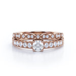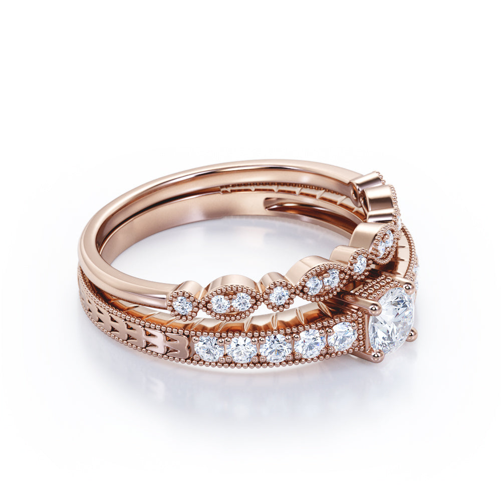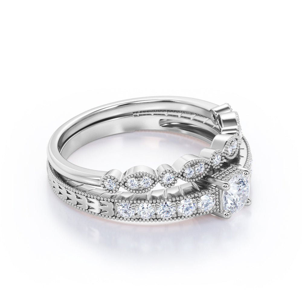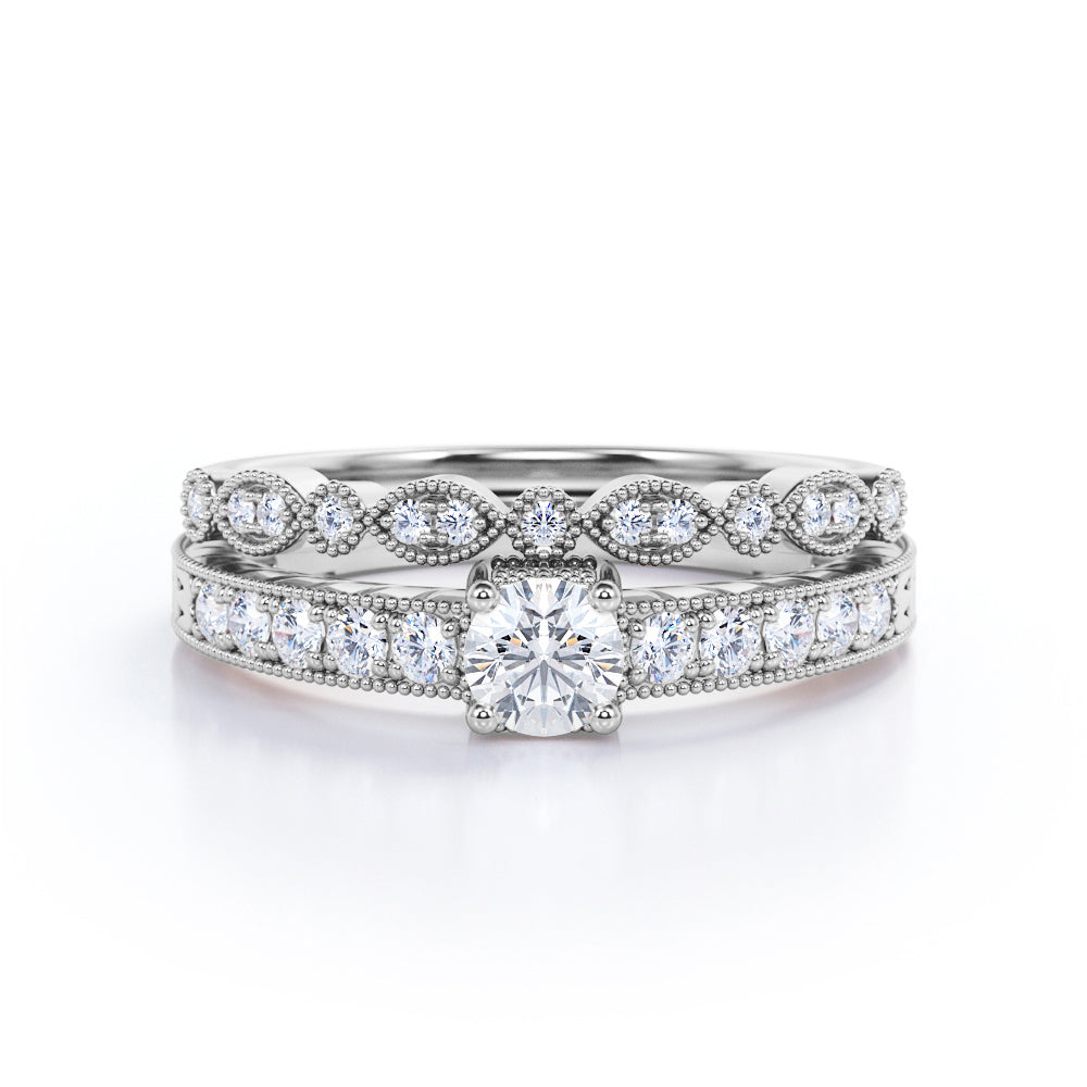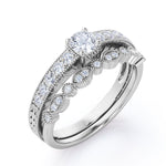 0.50 Carat Round Cut Diamond Vintage Milgrain Bridal Set Ring In White Gold