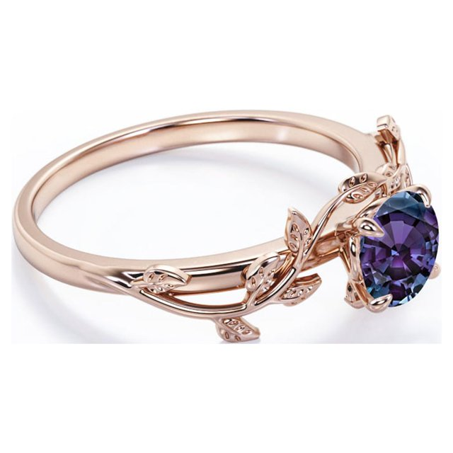 Soothe your soul with this 0.50 Carat - Round Cut Lab Created Alexandrite Ring - Leaf & Vine Engagement Ring - 18K Rose Gold Plating Over Silver. Skillfully hand-cut into a nice round cut by our skilled jewelers, this alluring alexandrite gemstone ring combines 0.50 Carat alexandrite on solid rose gold plating over silver. Special and non-traditional, this alexandrite band is well-suited for those who are not quite into normal lifestyle. Reflective properties of this alexandrite ring will absolutely enhance every style of its wearer. This alexandrite stone ring is beautiful and accessible since it is available at an affordable price. Considered as a symbol of eternal love and affection for your lover, this alexandrite anniversary band can definitely help you out. Additionally, this alexandrite sterling silver ring can be customized to your own choice of metal colors: 18K black gold plating over silver, 18K rose gold plating over silver, or 18K white gold plating over silver. Let’s impress her with this alexandrite birthstone jewelry and she will be eternally joyful.
